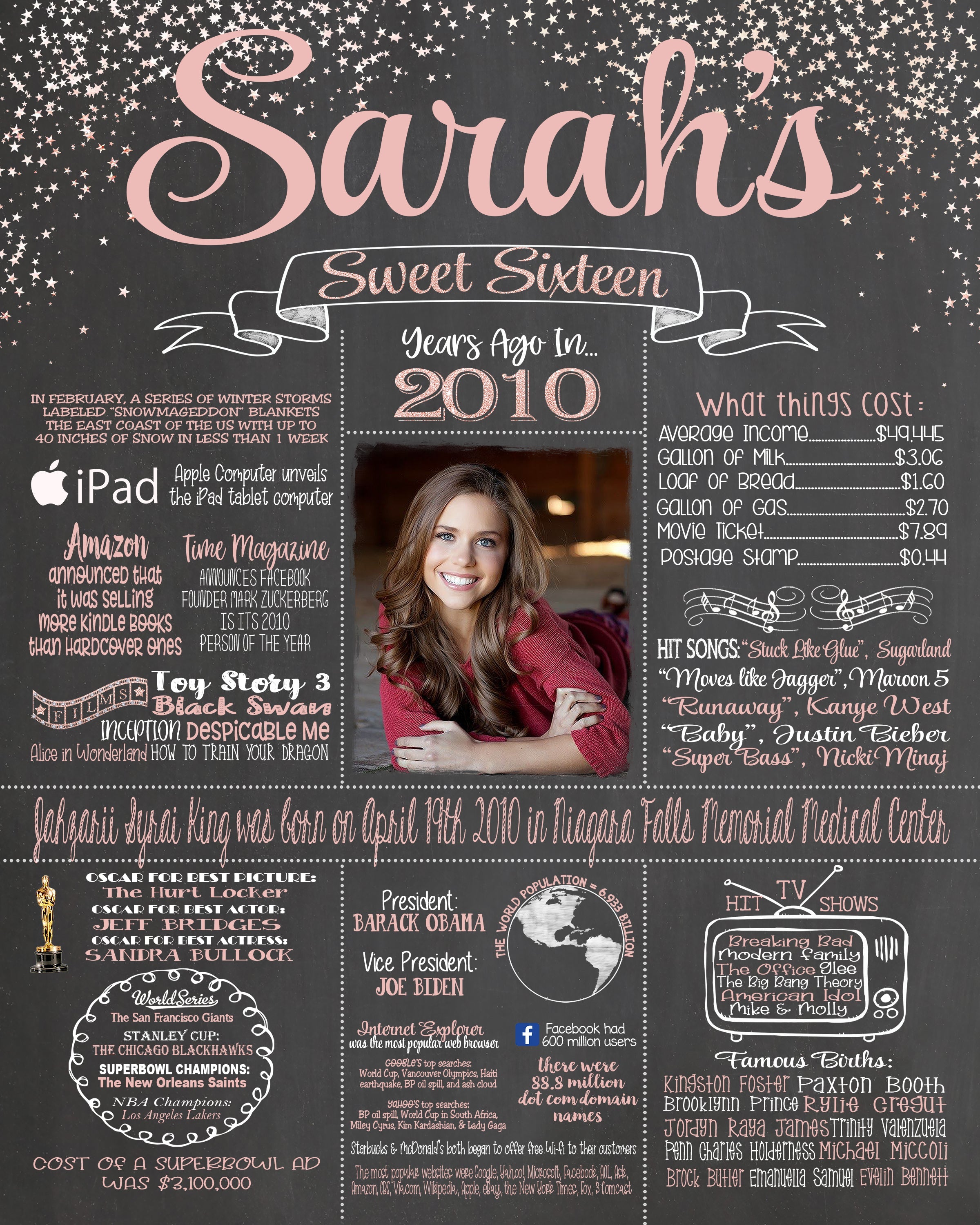 Sweet 16 Birthday Chalkboard - PHOTO Chalkboard - Sweet Sixteen Stars, 2010