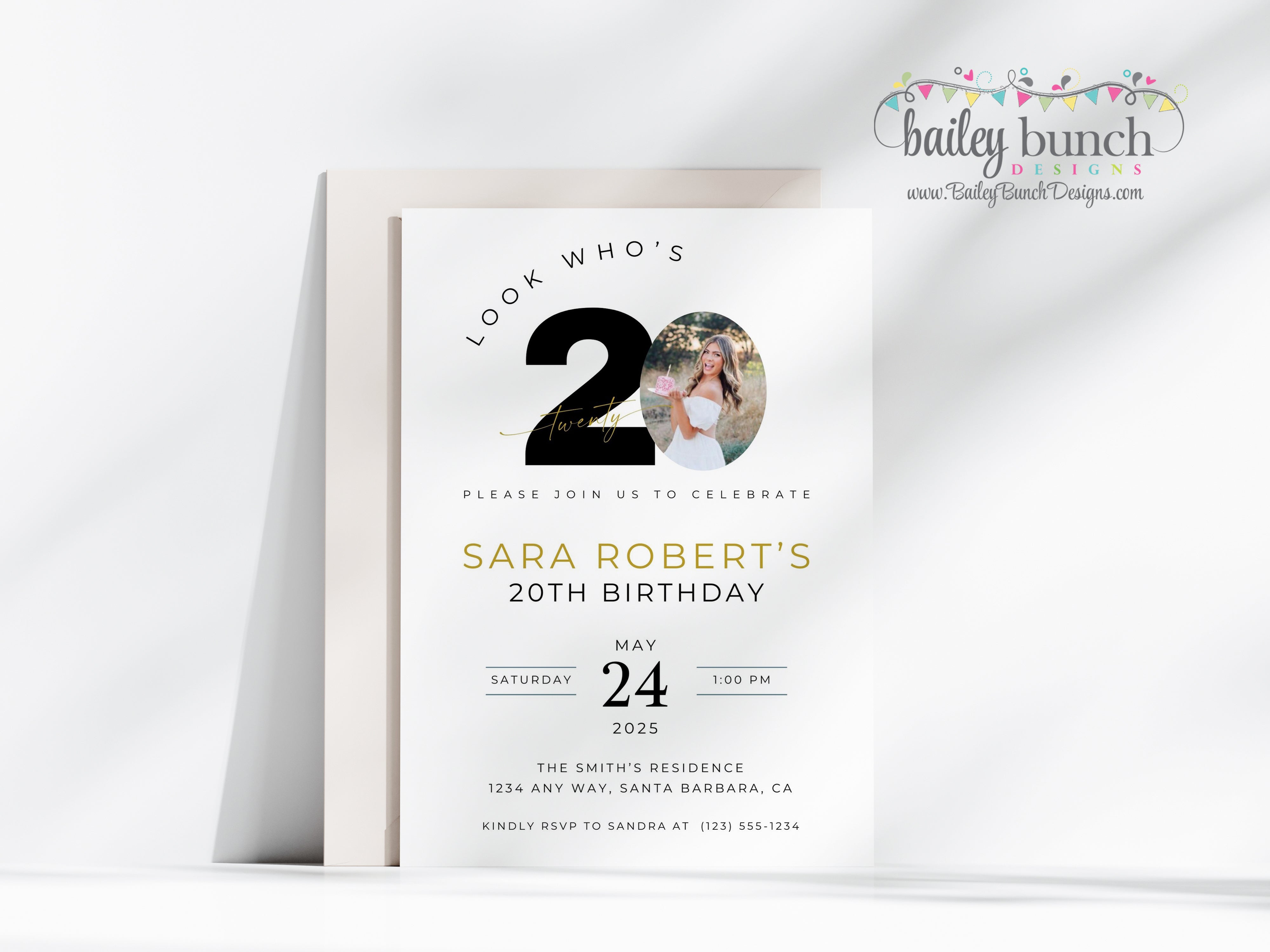 20th Birthday Photo Invite Template BDAY20PTEMP05