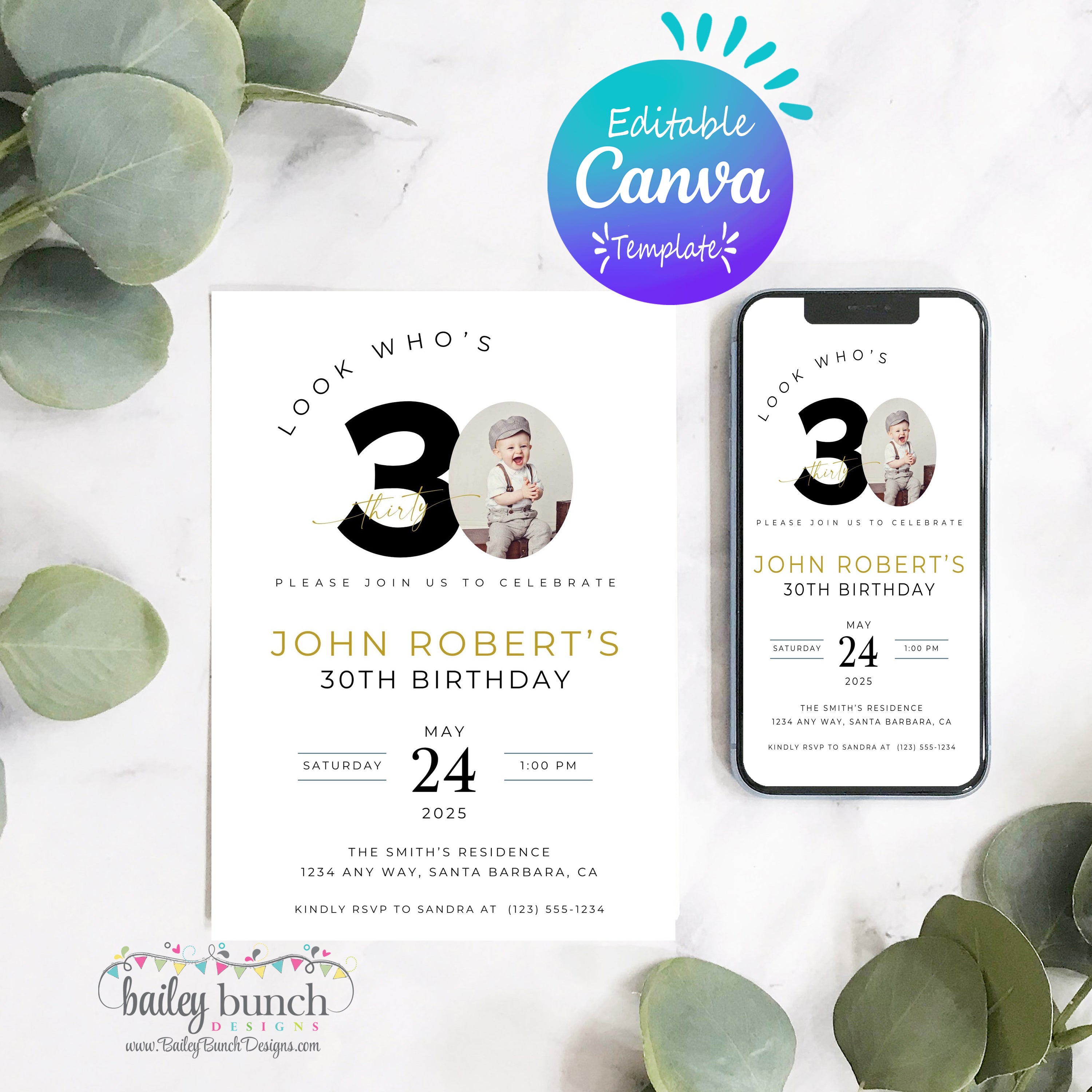 Celebrate your 30th birthday in style with our simple modern and minimalist invitation Template. Super quick and easy to edit, allowing you to plan the perfect thirtieth birthday bash. The template is sized 5x7 inches and is fully editable in Canva which allows you to personalize every detail, creating a customized invitation that reflects your unique taste.