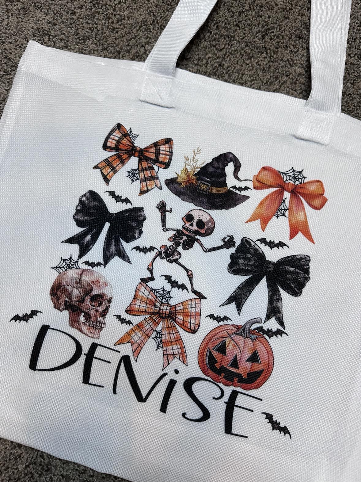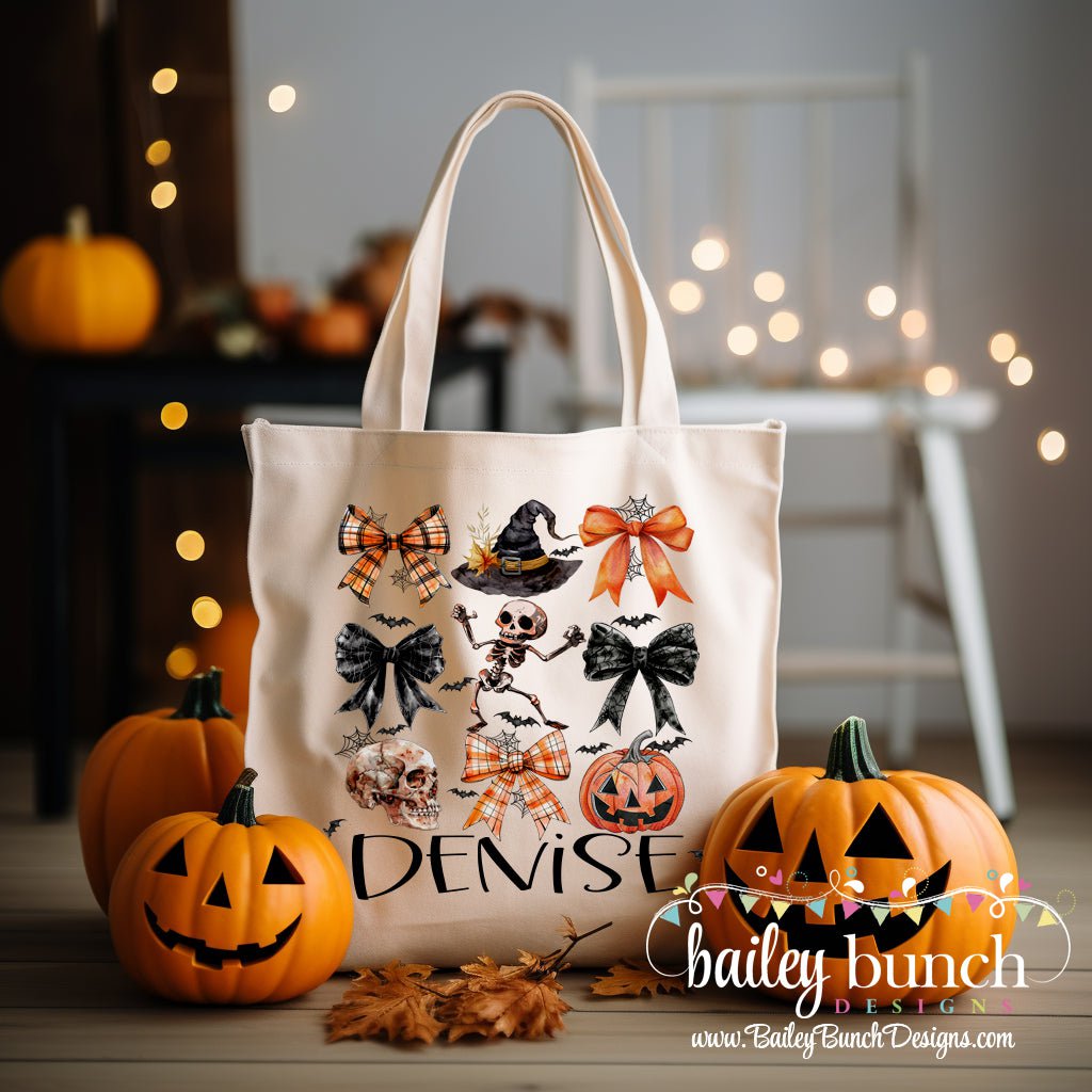 HALLOWEEN BOW Coquette BAG with NAME Trick Or Treat Halloween Bag Tote TOTEBOW90520