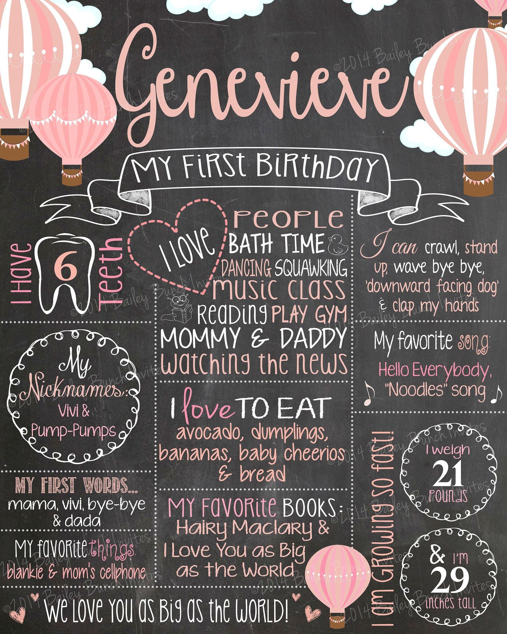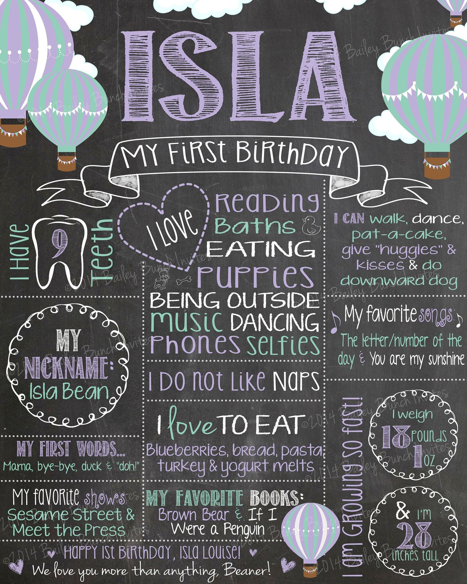 Hot Air Balloon Birthday Chalkboard Poster Sign