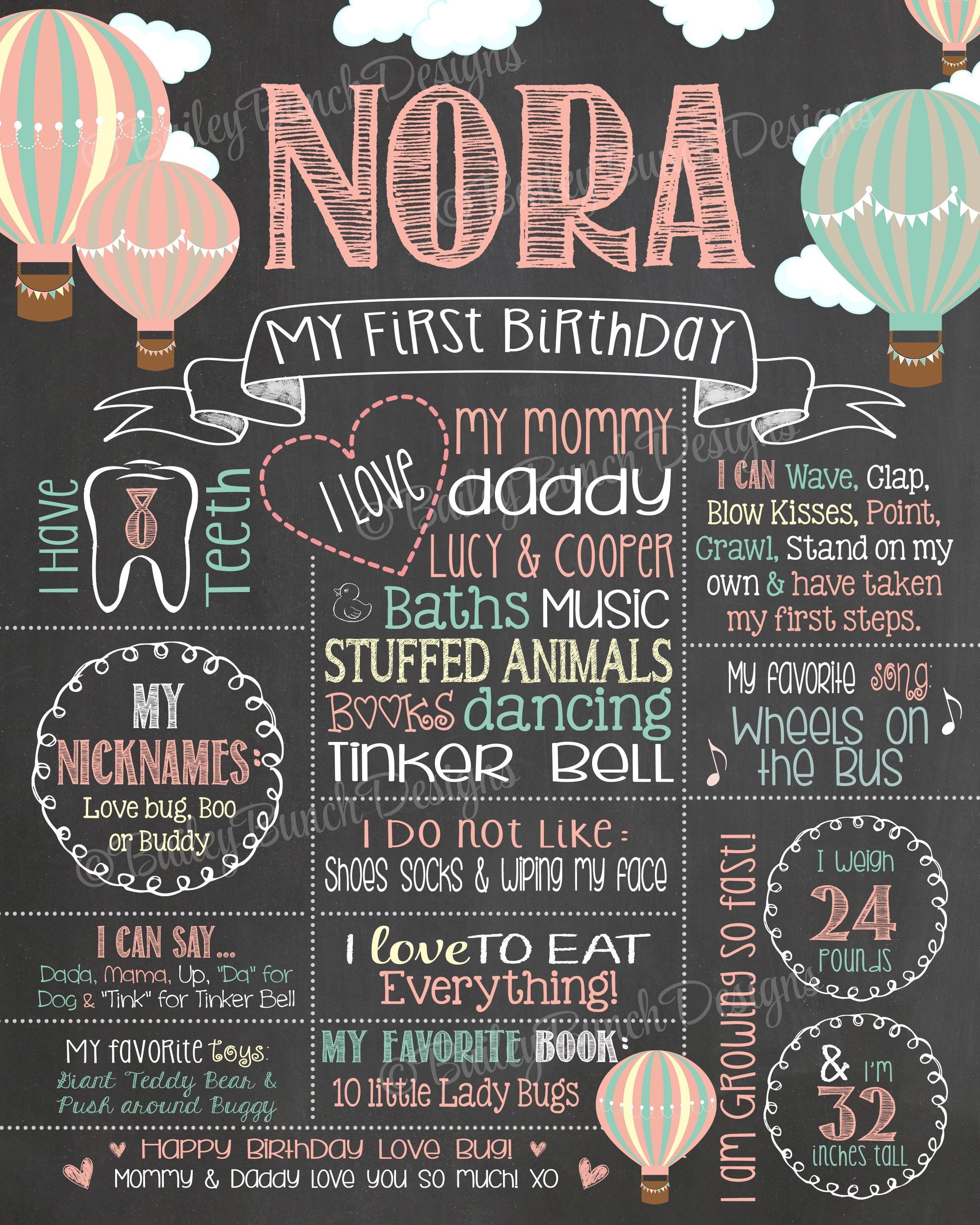 Hot Air Balloon Birthday Chalkboard Poster Sign - Lots of Colors HOTAIRCHALK0520