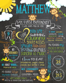 Little Monkey BLUE Birthday Birthday Chalkboard Poster