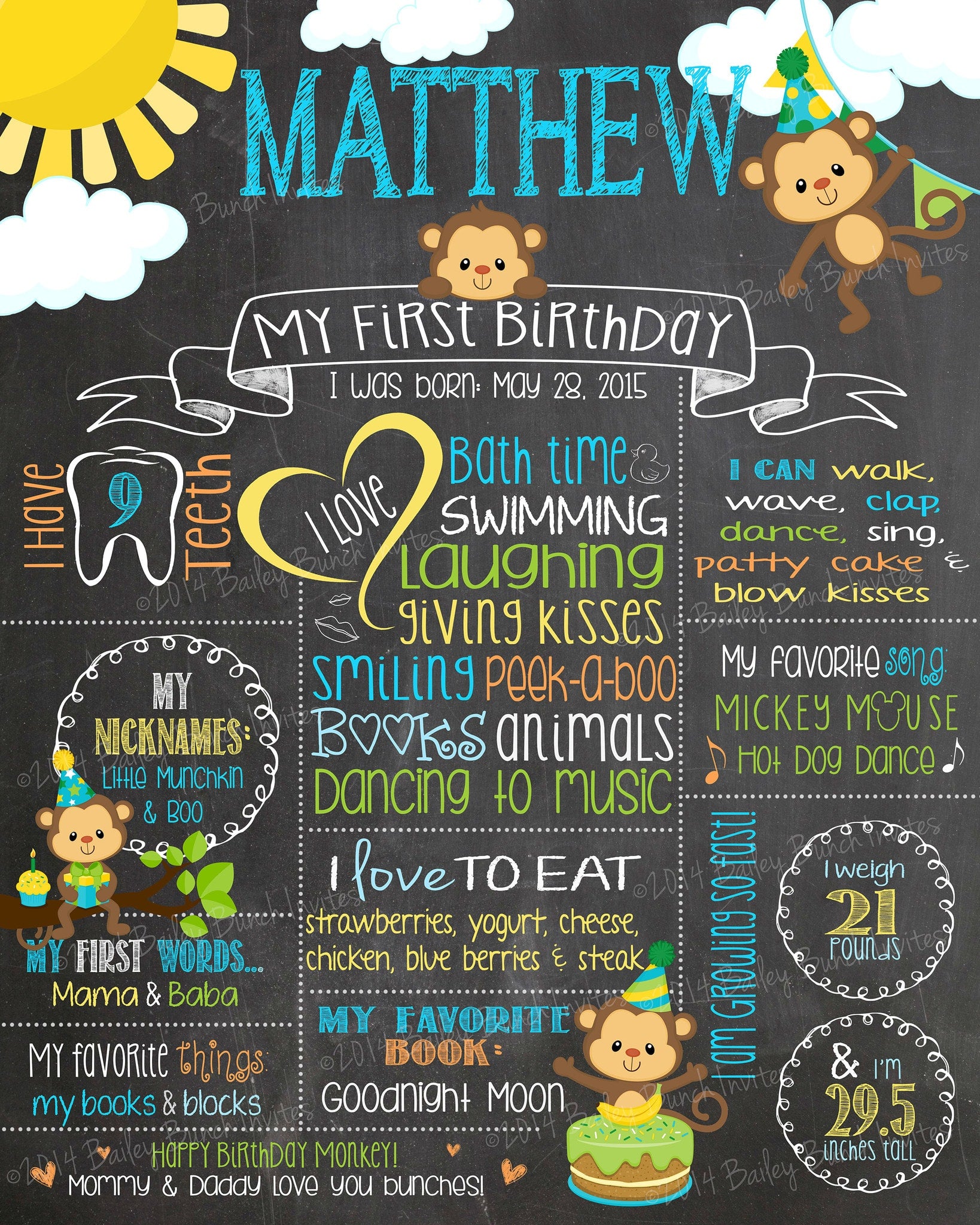 Little Monkey Birthday Birthday Chalkboard Poster, BLUE, Boy and Girl MONKEYBCHALK0520