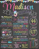 Your chalkboard can be printed at most local photo print shops: walgreens, walmart, staples, fedex kinkos, office depot, etc The file may be printed on card stock or regular paper and then mounted onto foam board or placed in a frame. Most office supply stores will print the poster and mount it on foam board for you! The ways of presenting your child's first birthday poster are endless: you could frame it, mount it on a foam board, print it on a canvas, or even share it digitally on facebook or thru email.