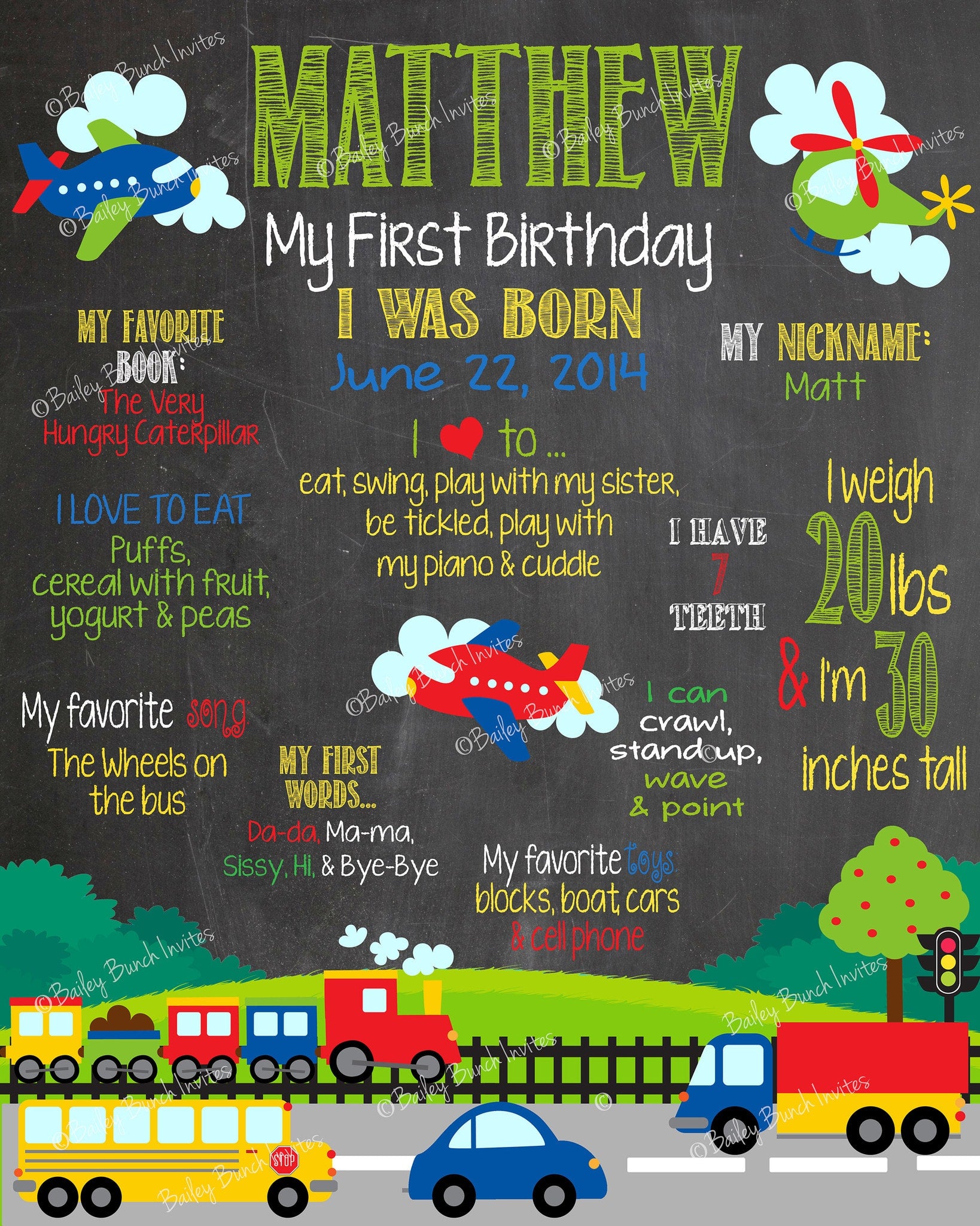 Transportation, Bus, Truck, Plane, Car Birthday Chalkboard, TRUCKSCHALK0520