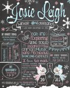 With this option we will print and ship your board to you using our professional print lab. The chalkboard will be printed on high quality professional paper and mounted to 1/8 masonite board. Your board will arrive at your door ready to be displayed! With this option you will also receive the digital file for sharing electronically. In addition to the design time, please allow for an additional 3-4 days for your printed chalkboard to arrive.