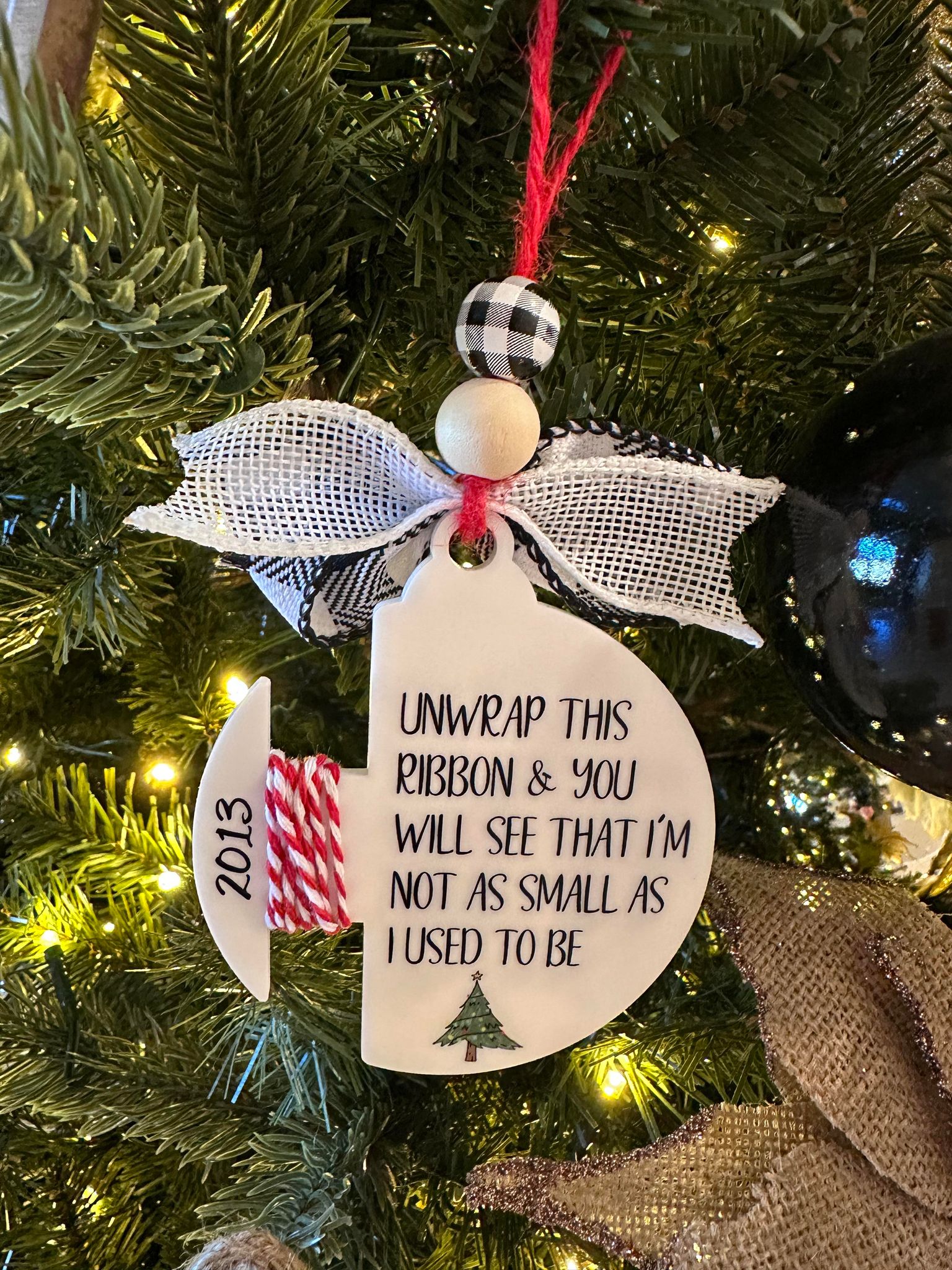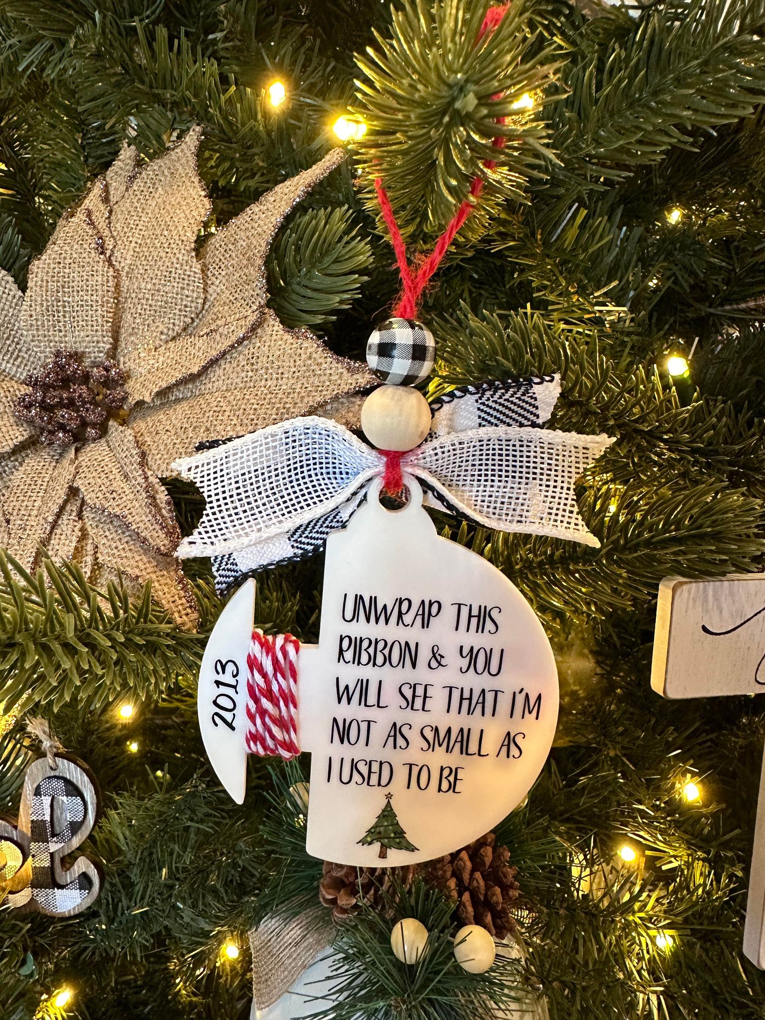 'Tis the season... for customized ornaments! A beautiful ornament to remember your bundle of joy! Growth Poem "Unwrap this ribbon & you will see that i'm not as small as I used to be.