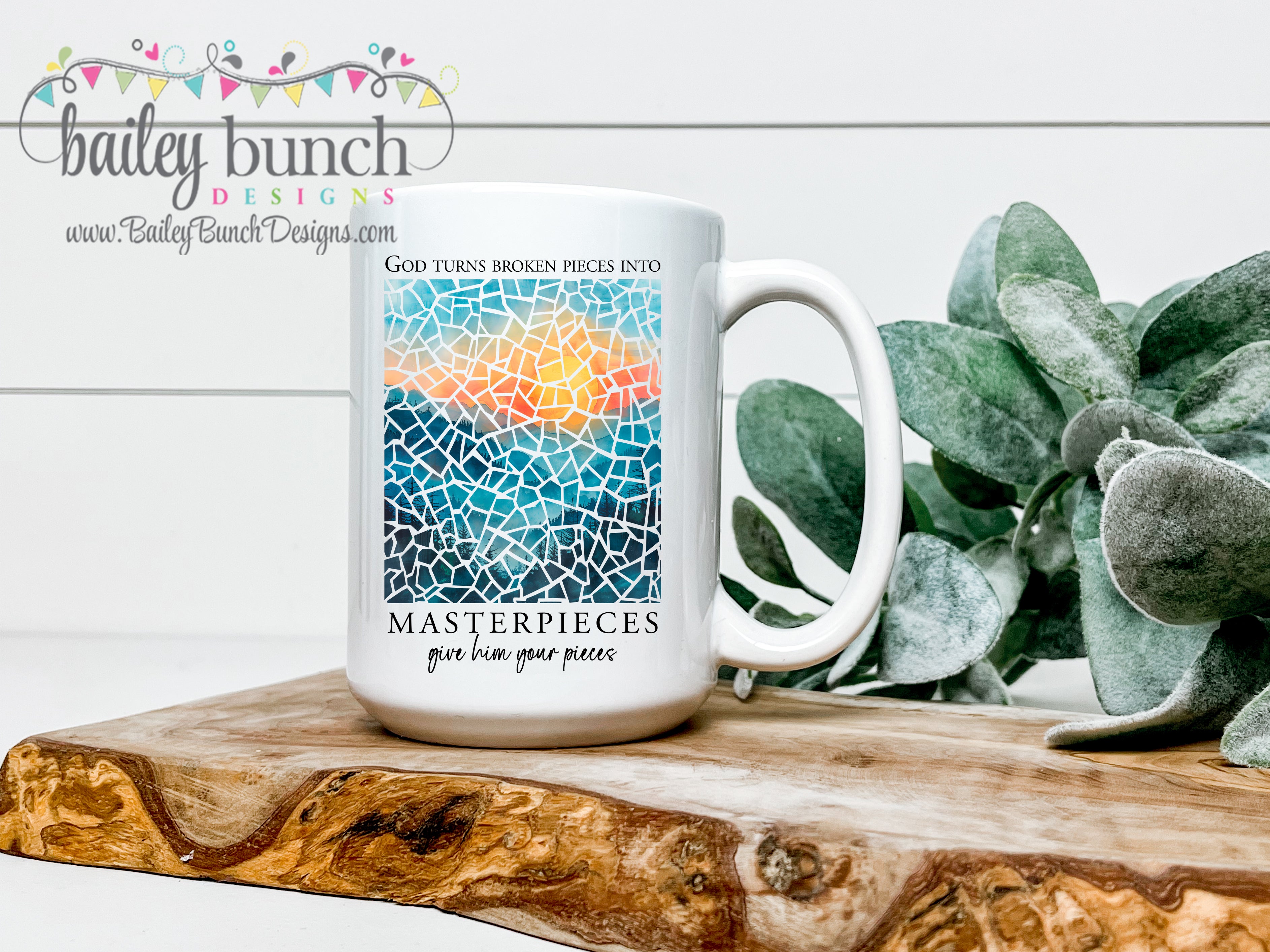 God Turns Broken Pieces into Masterpieces Coffee Mug!