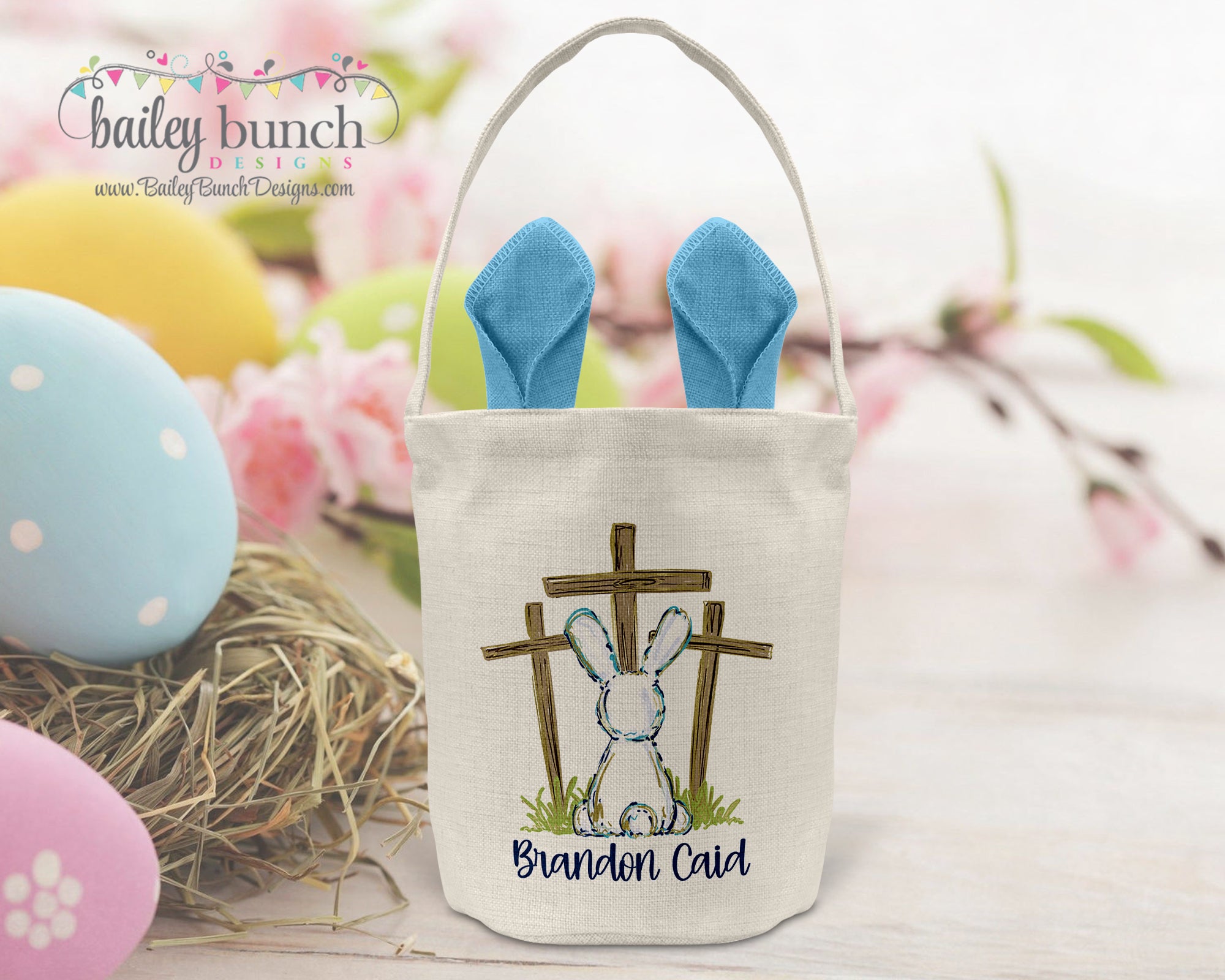 Easter Bunny 3 Crosses Basket Bunny Ears Basket Personalized BASKETCROSS20520
