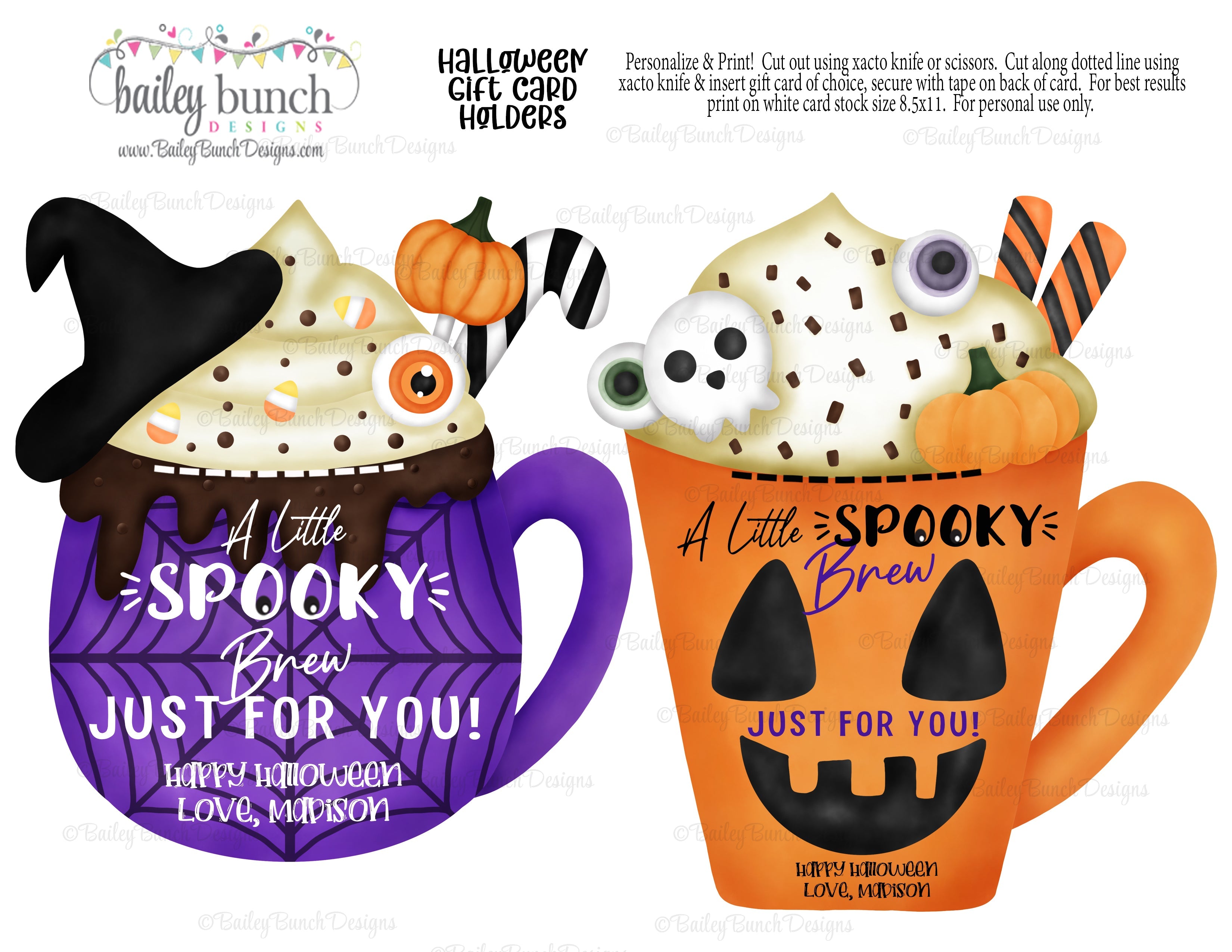 Halloween Spooky Brew Gift Card Holders, Halloween Gifts, Best Teacher Gifts, Non Candy Halloween treats, Happy Halloween, Spooky Brew - Editable Canva Template