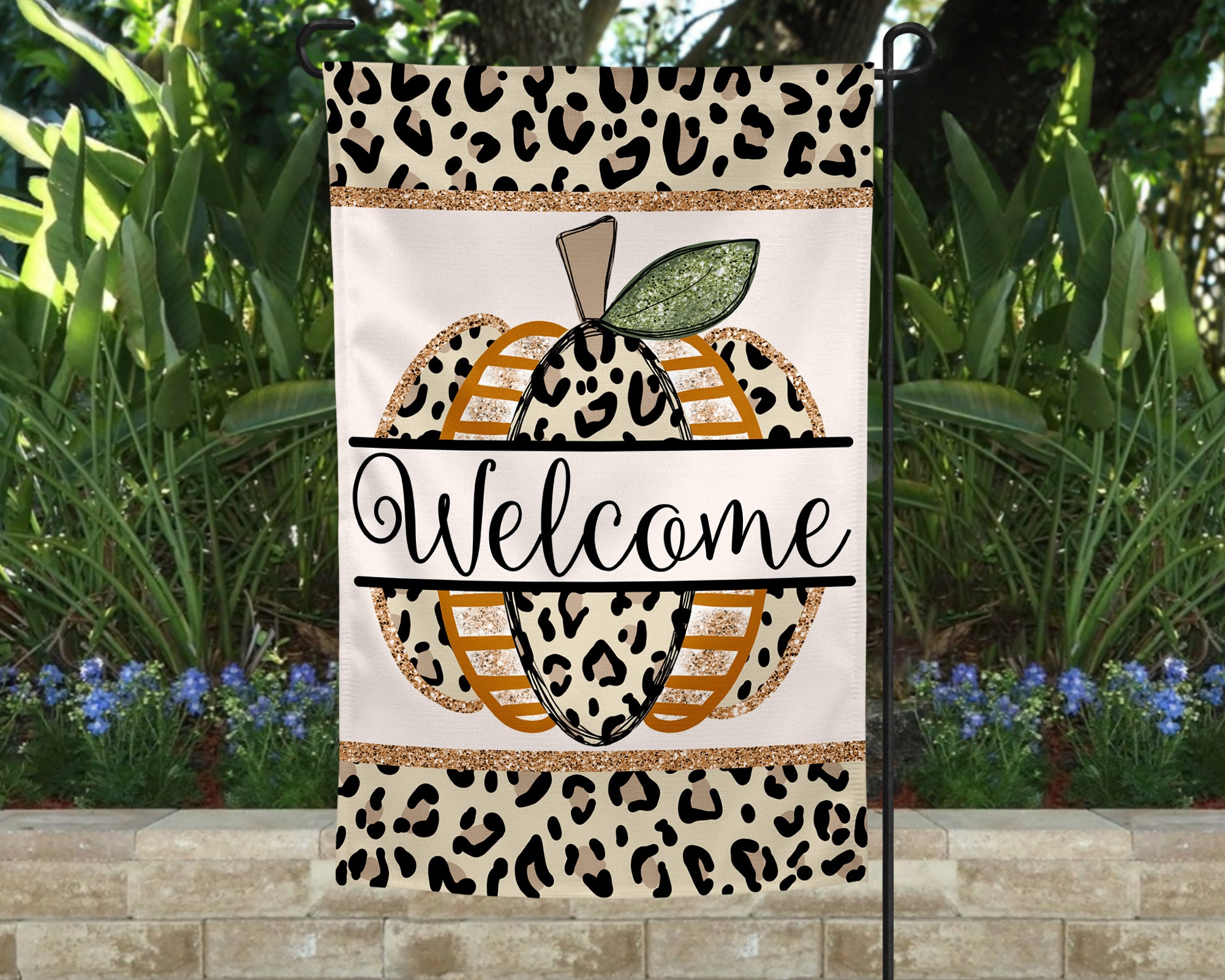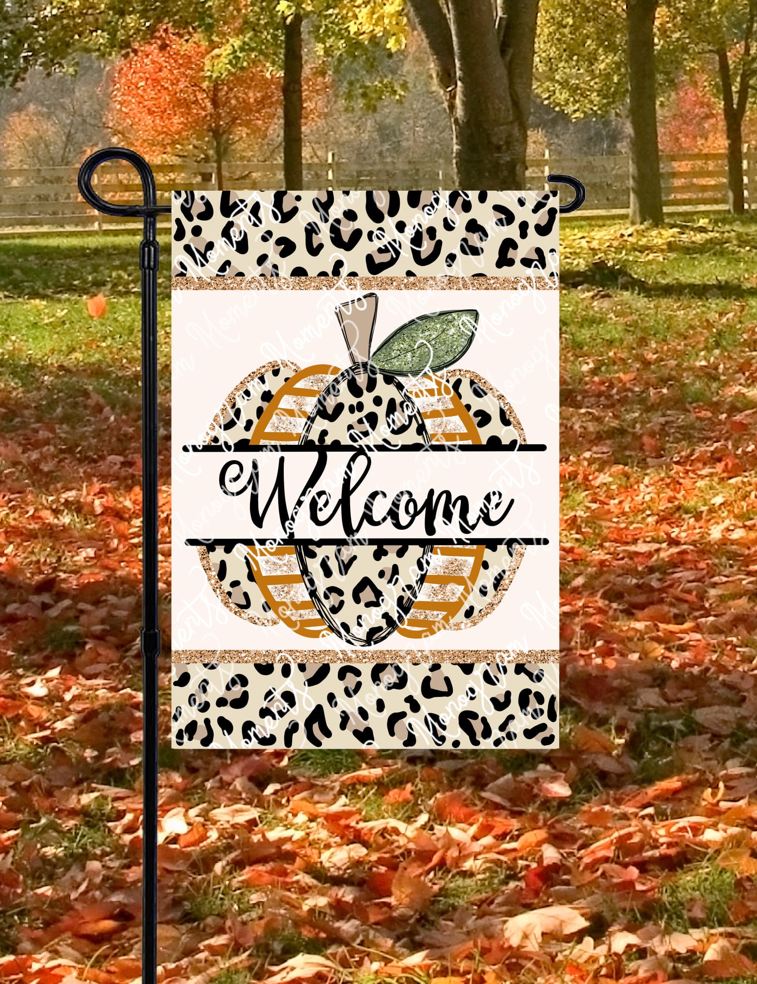 FALL LEOPARD PUMPKIN GARDEN FLAG