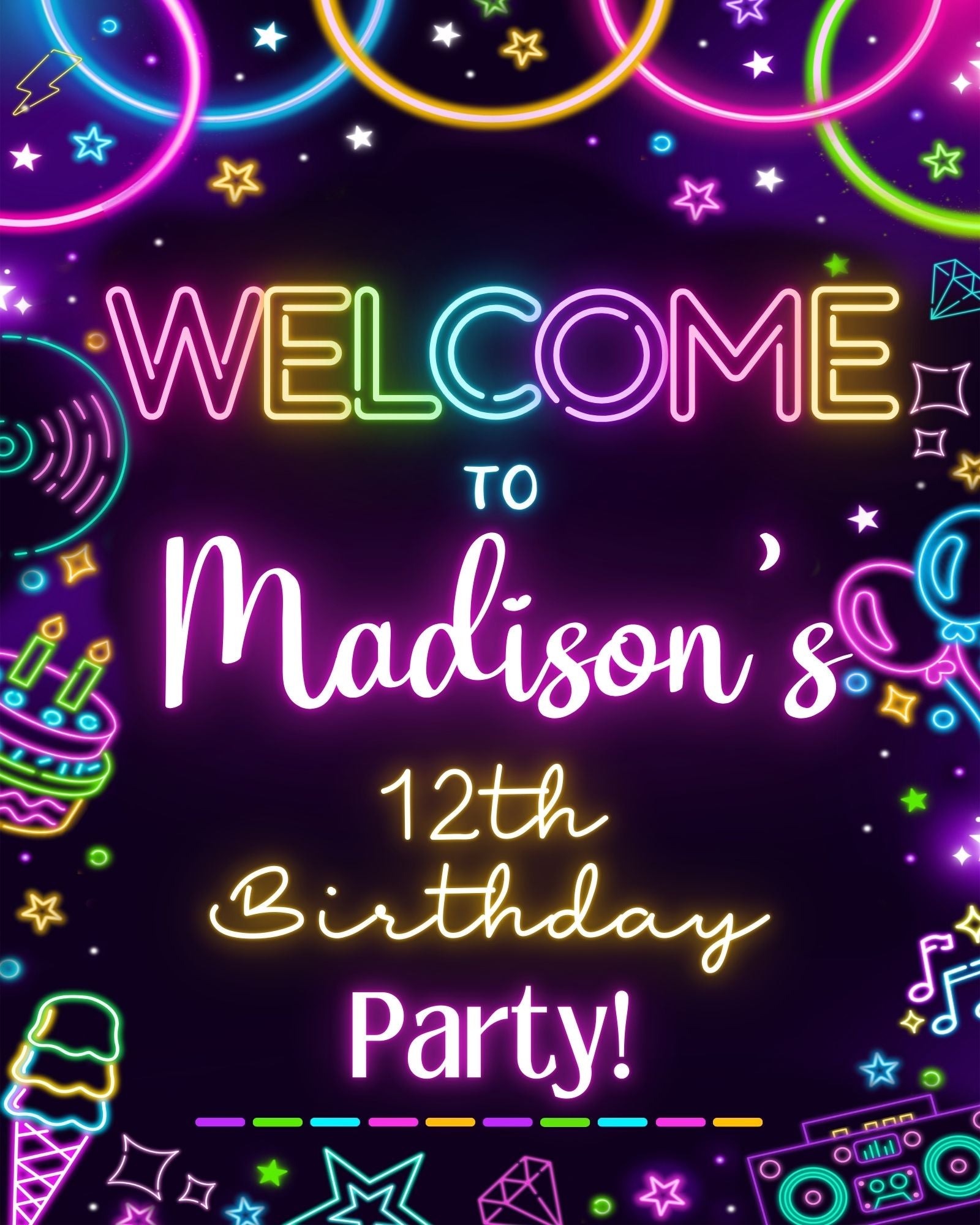 Glow Crazy Birthday Party Welcome Sign Template GLOWWE0520