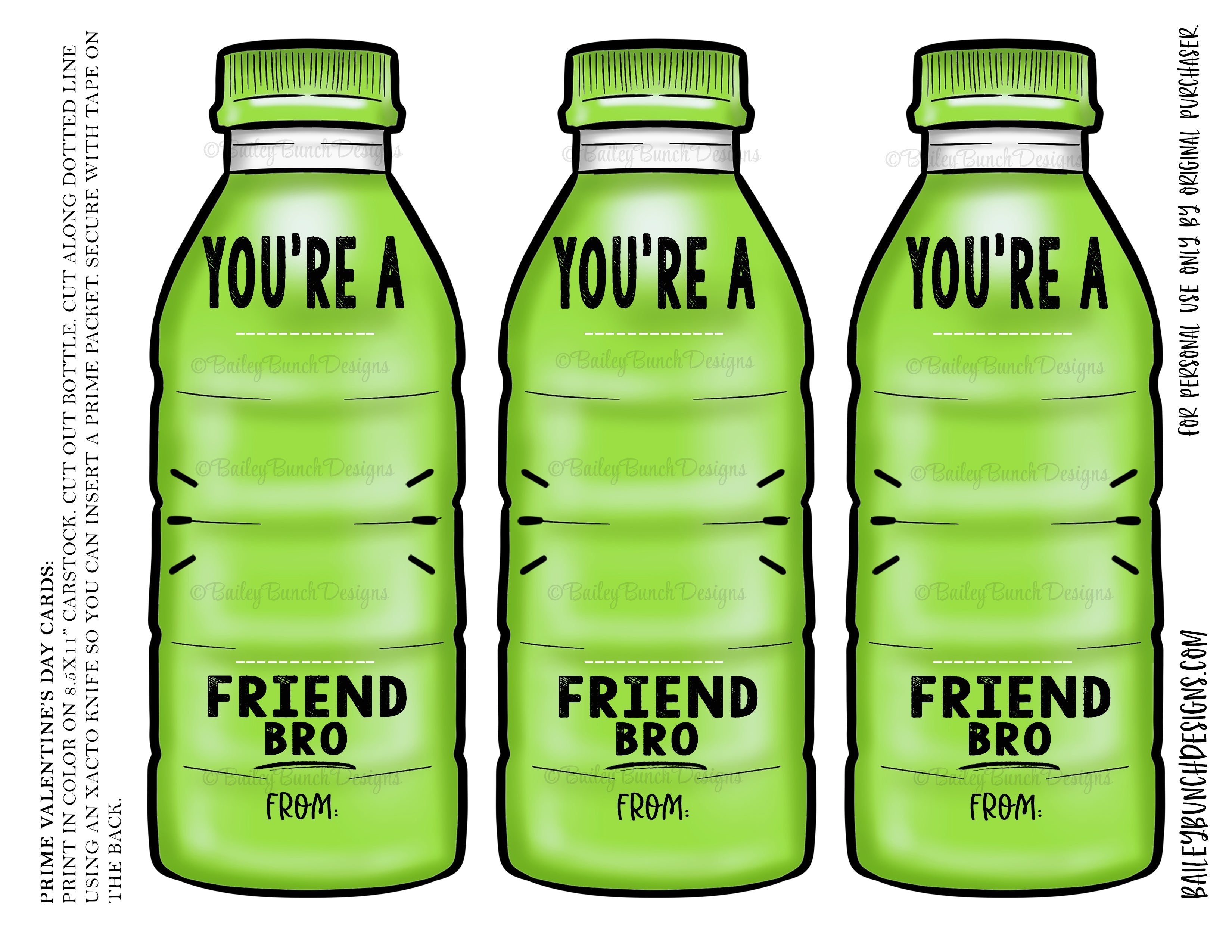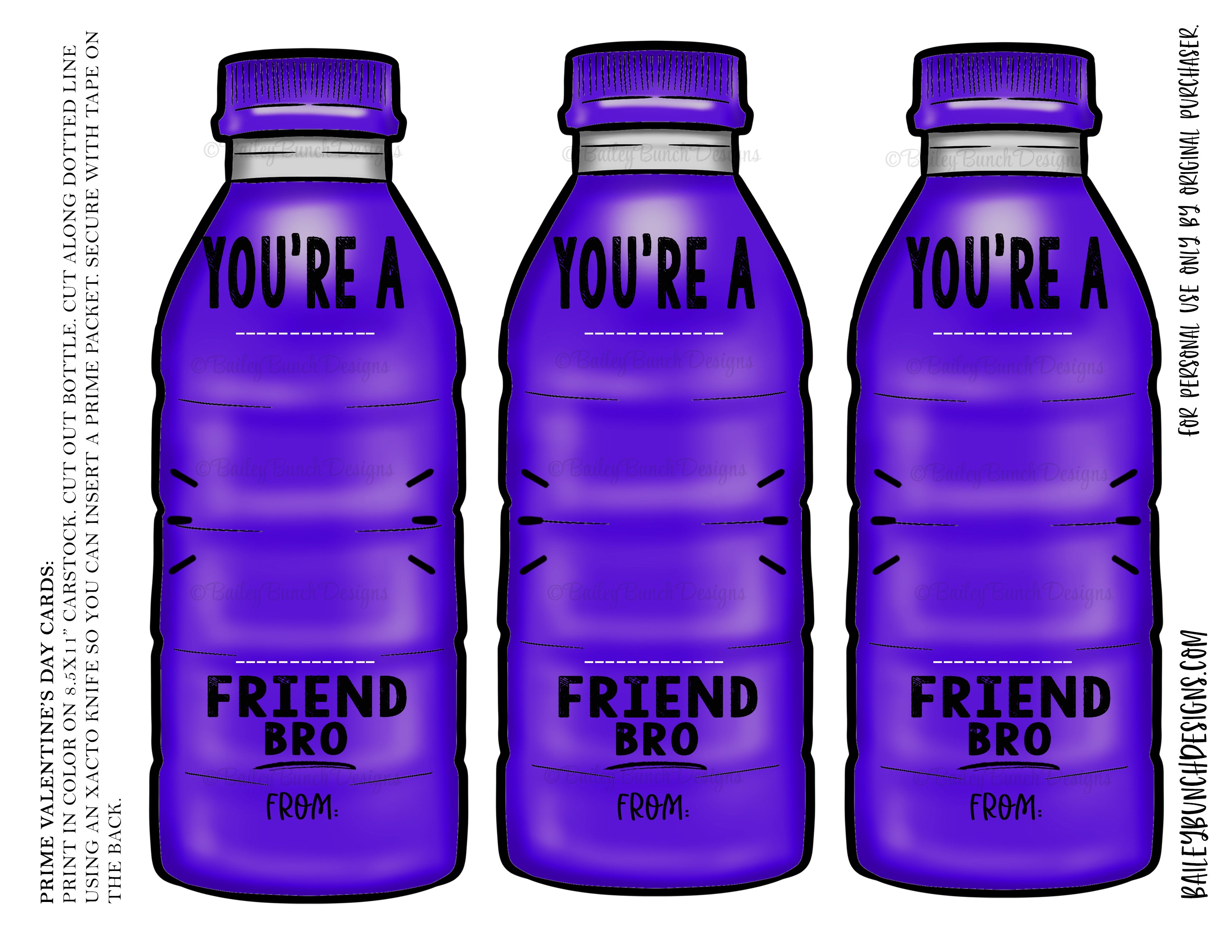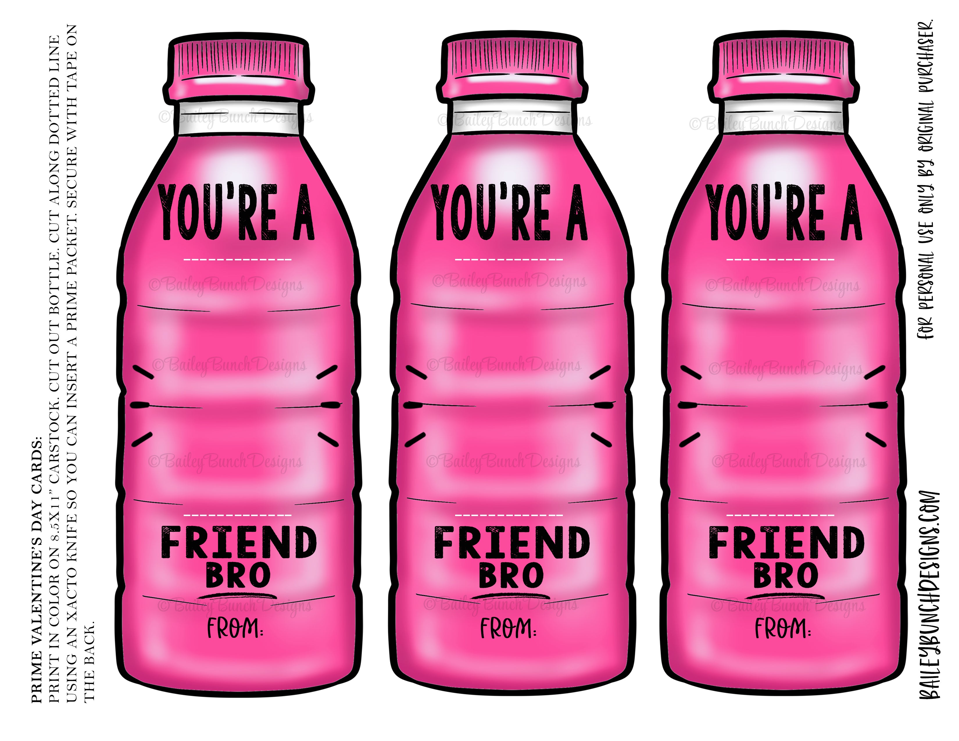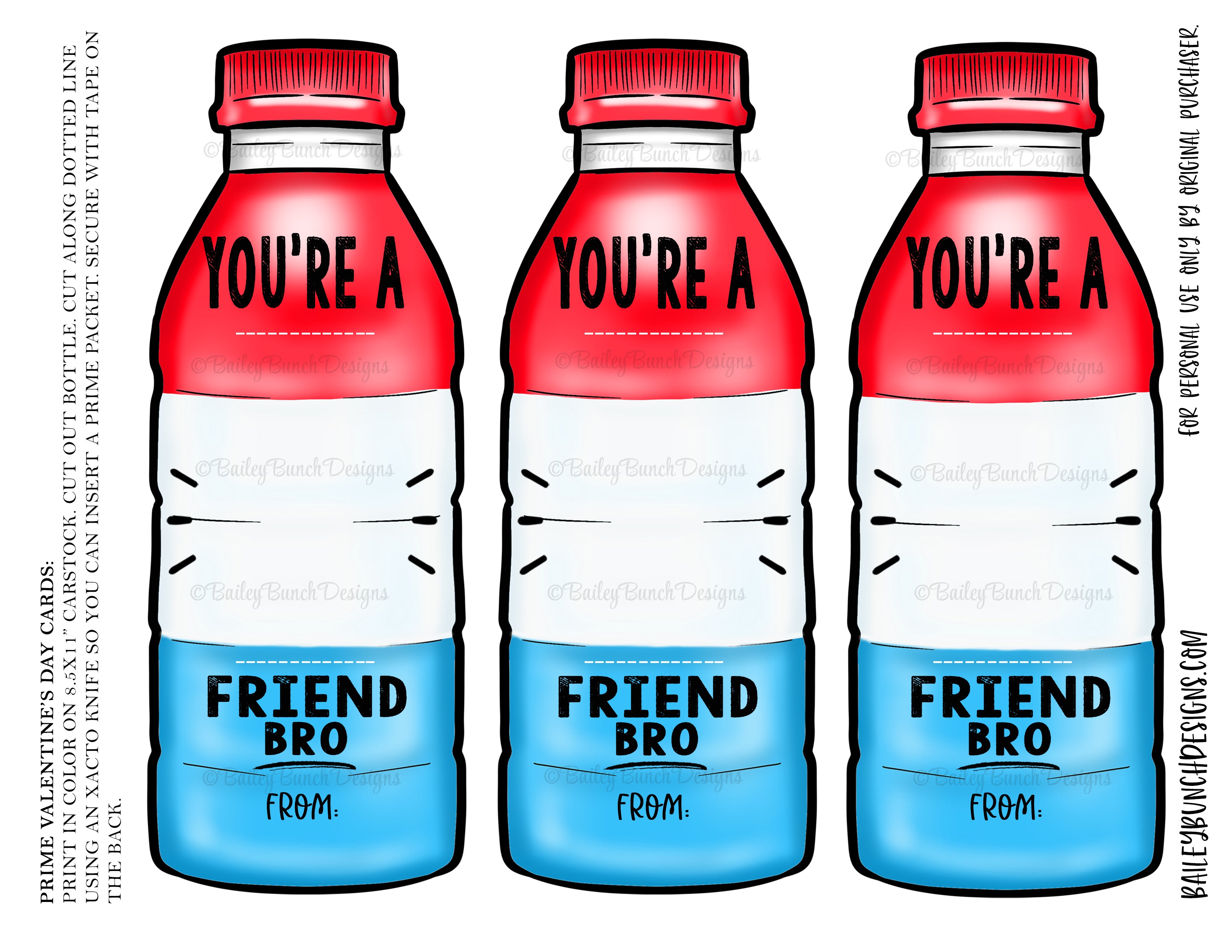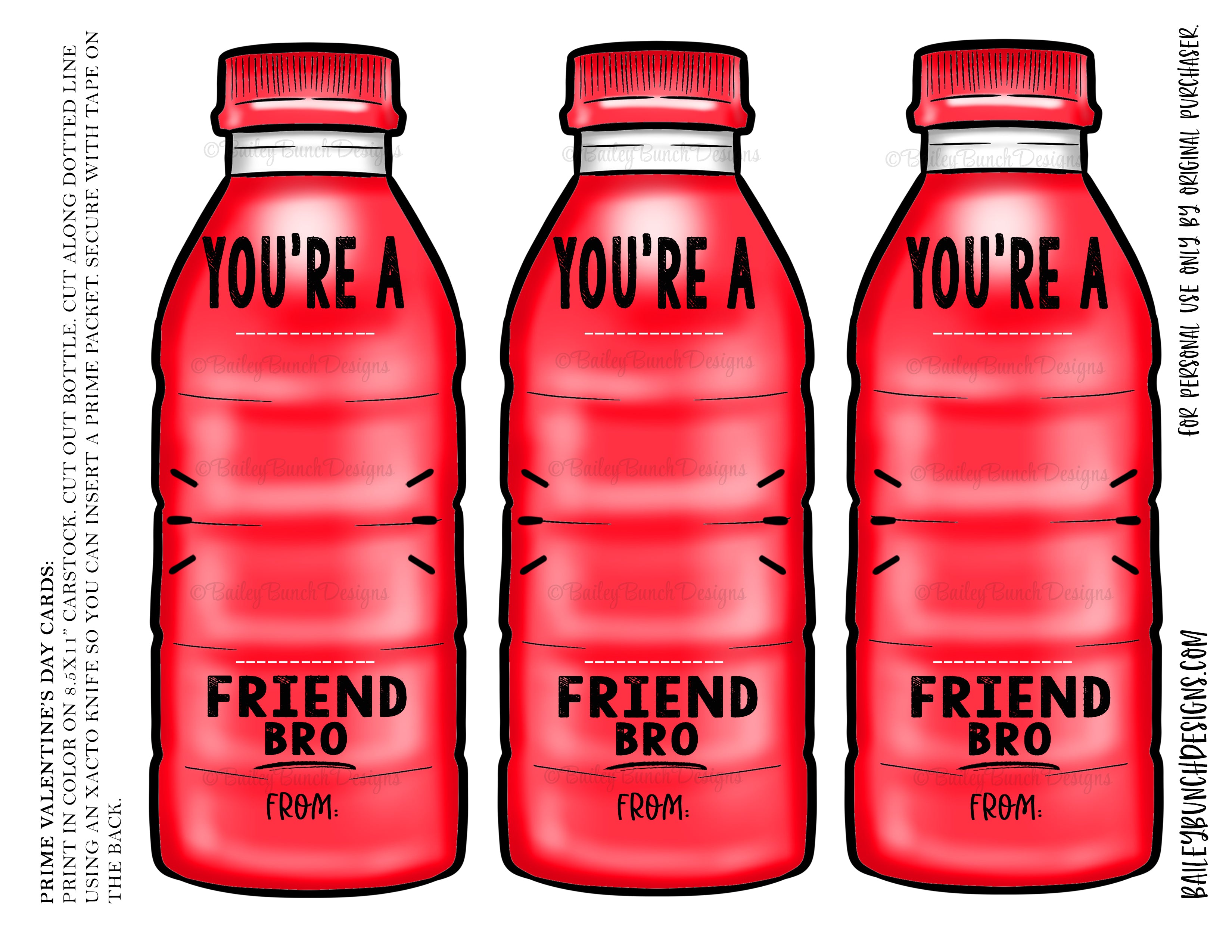 "You're a PRIME Friend!" & "You're a PRIME Friend Bro!" PRINTABLE VALENTINE'S DAY DRINK CARDS