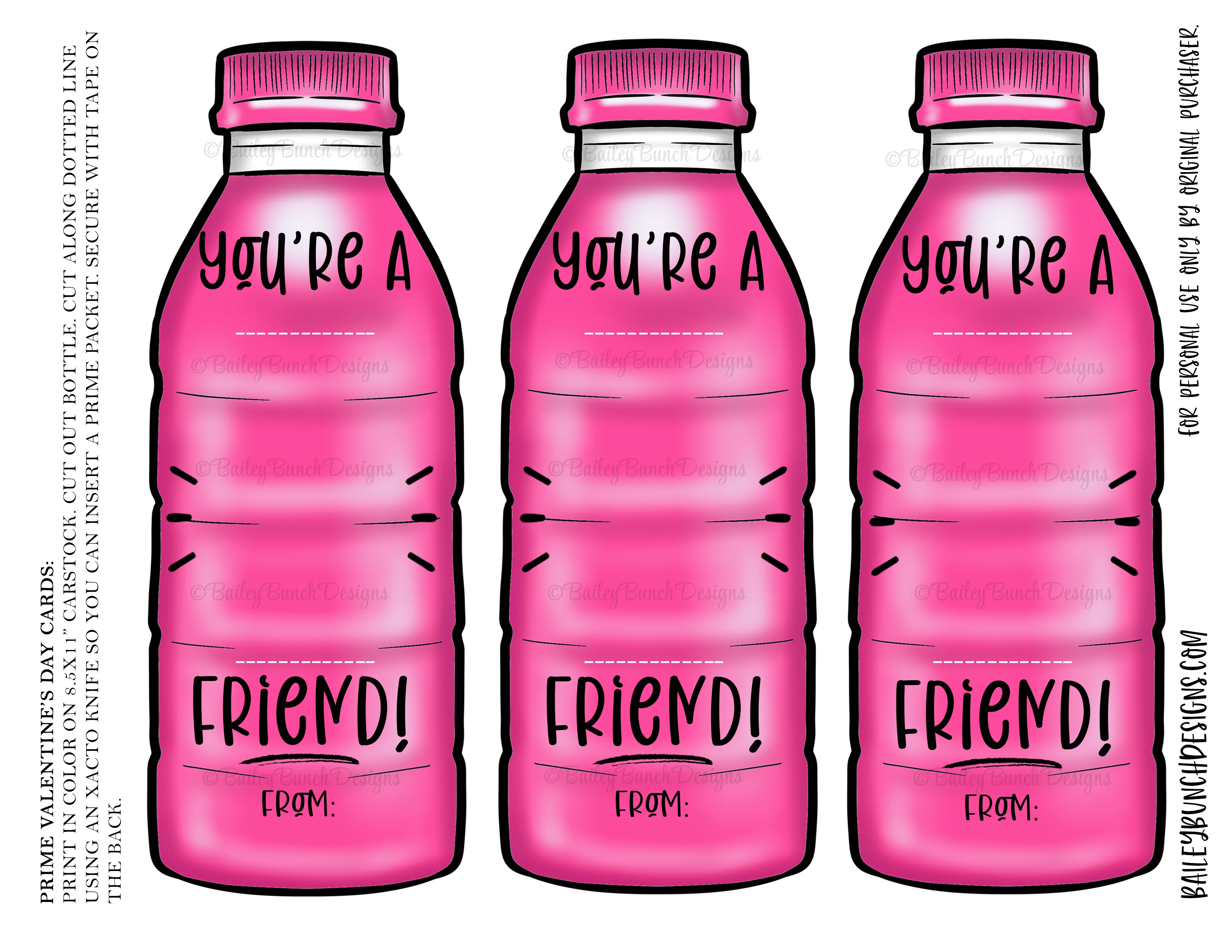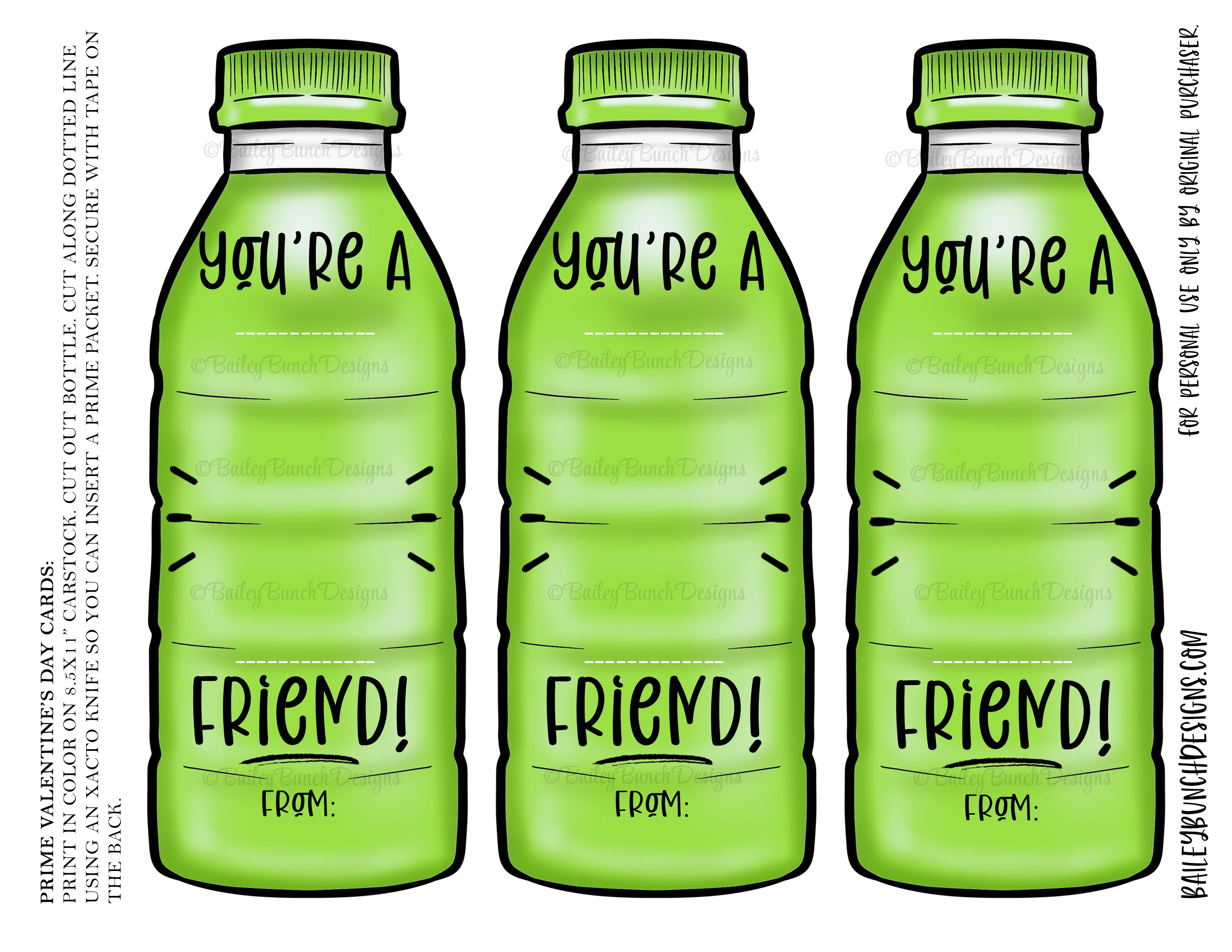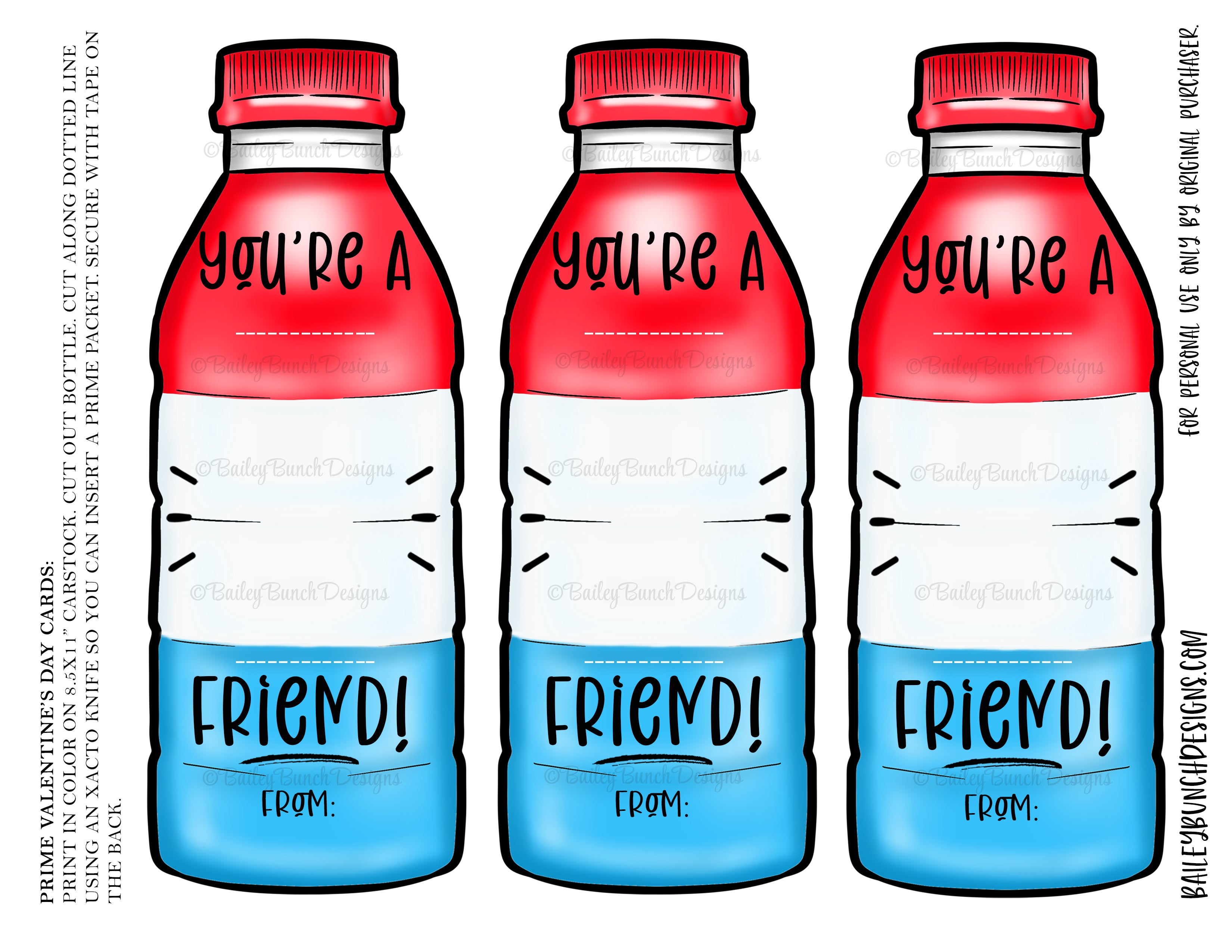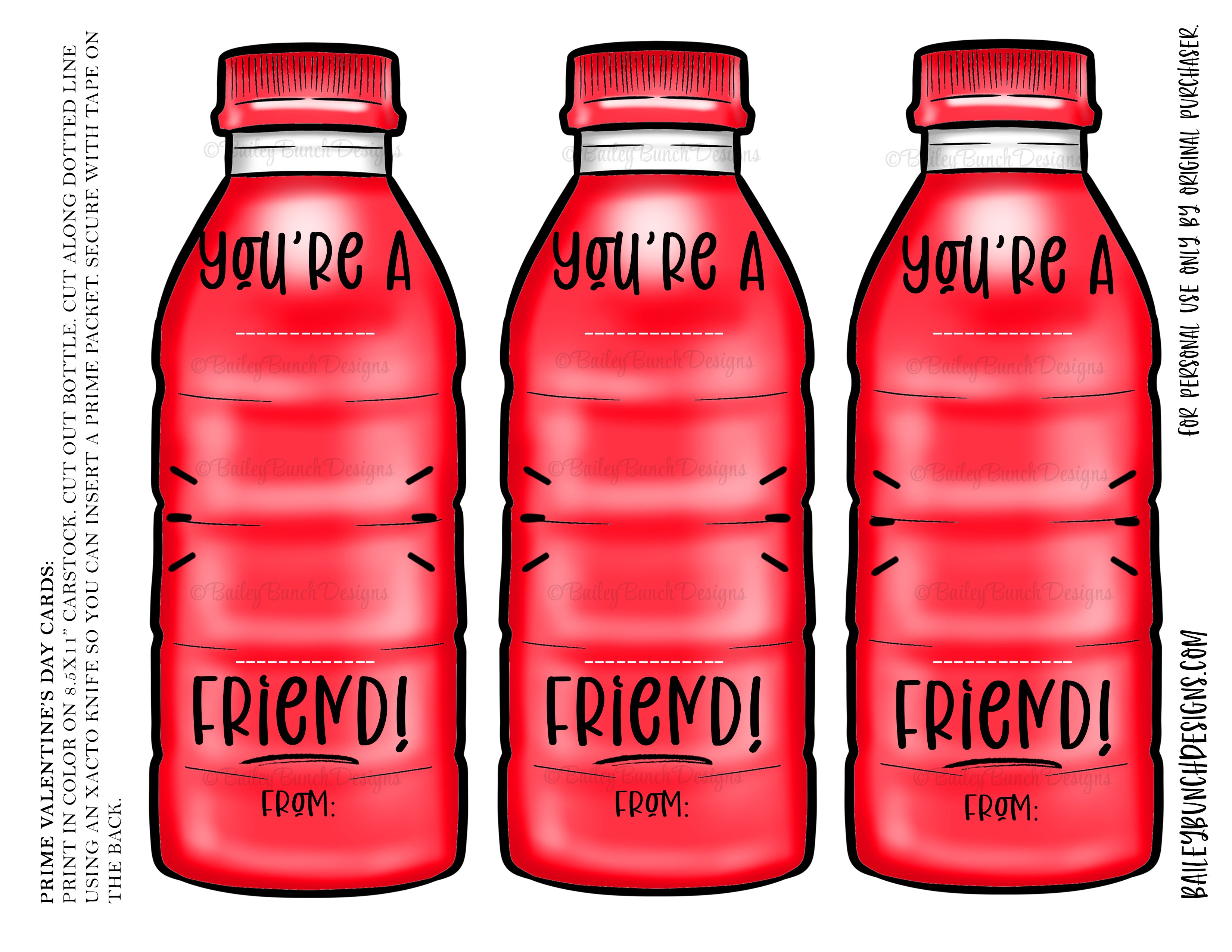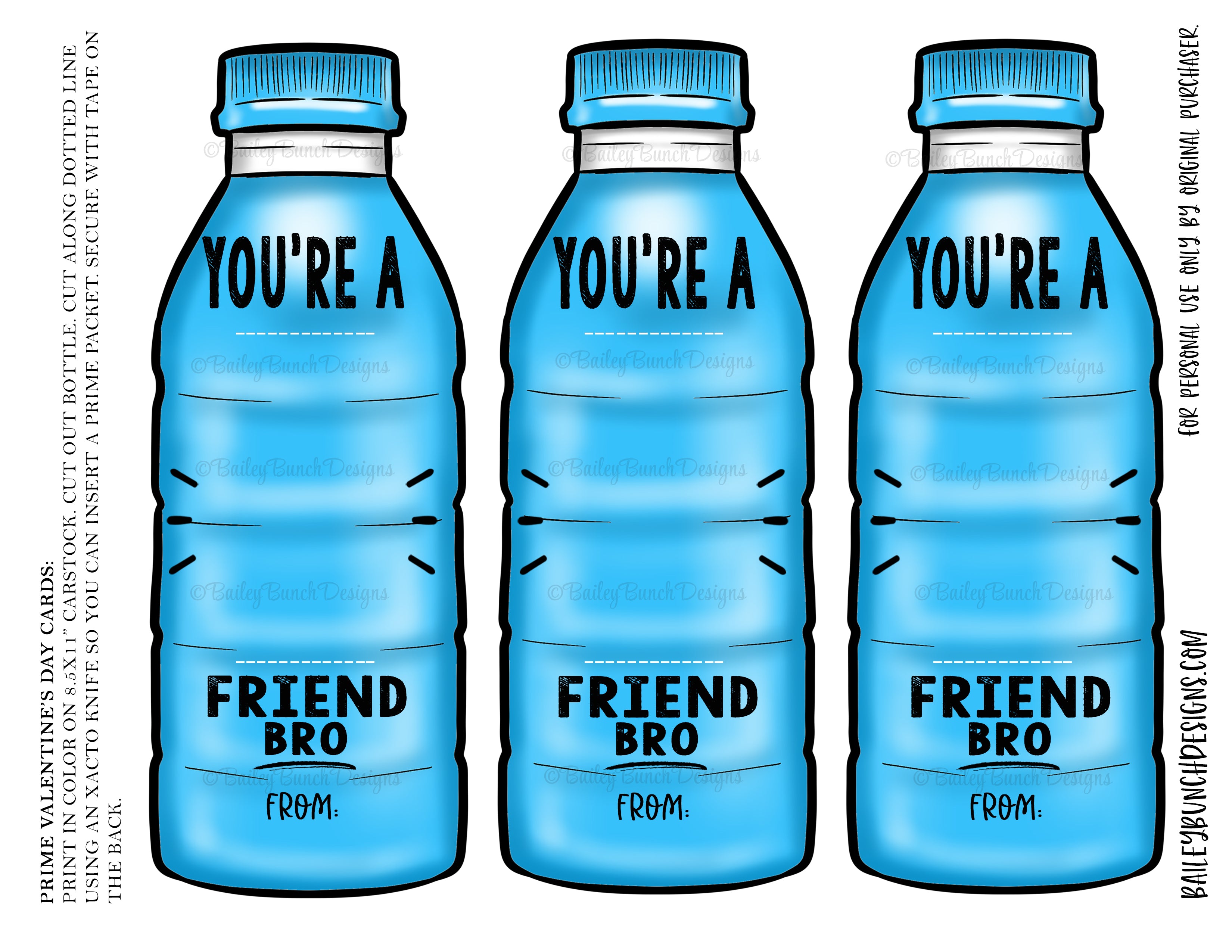 "You're a PRIME Friend!" & "You're a PRIME Friend Bro!" PRINTABLE VALENTINE'S DAY DRINK CARDS
