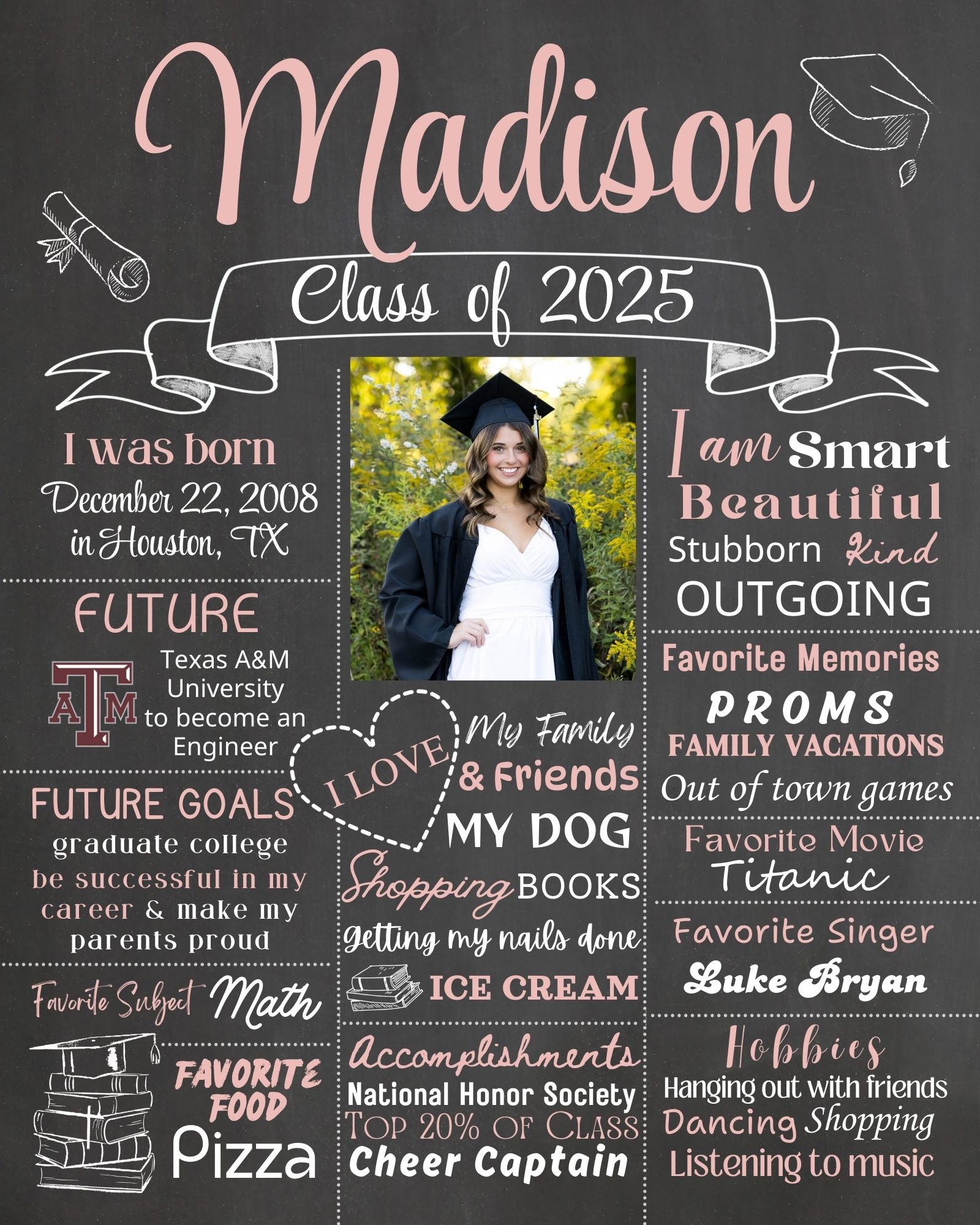 ⚠️📏This design is for the Graduation Chalkboard SIZE 16x20, 18x24 & 24x36 (can also be printed as an 8x10) and is for Class of 2025, If you need a different Size, or Year do not purchase this design. Just send me a message and I will get you a link for what you are needing.⚠️