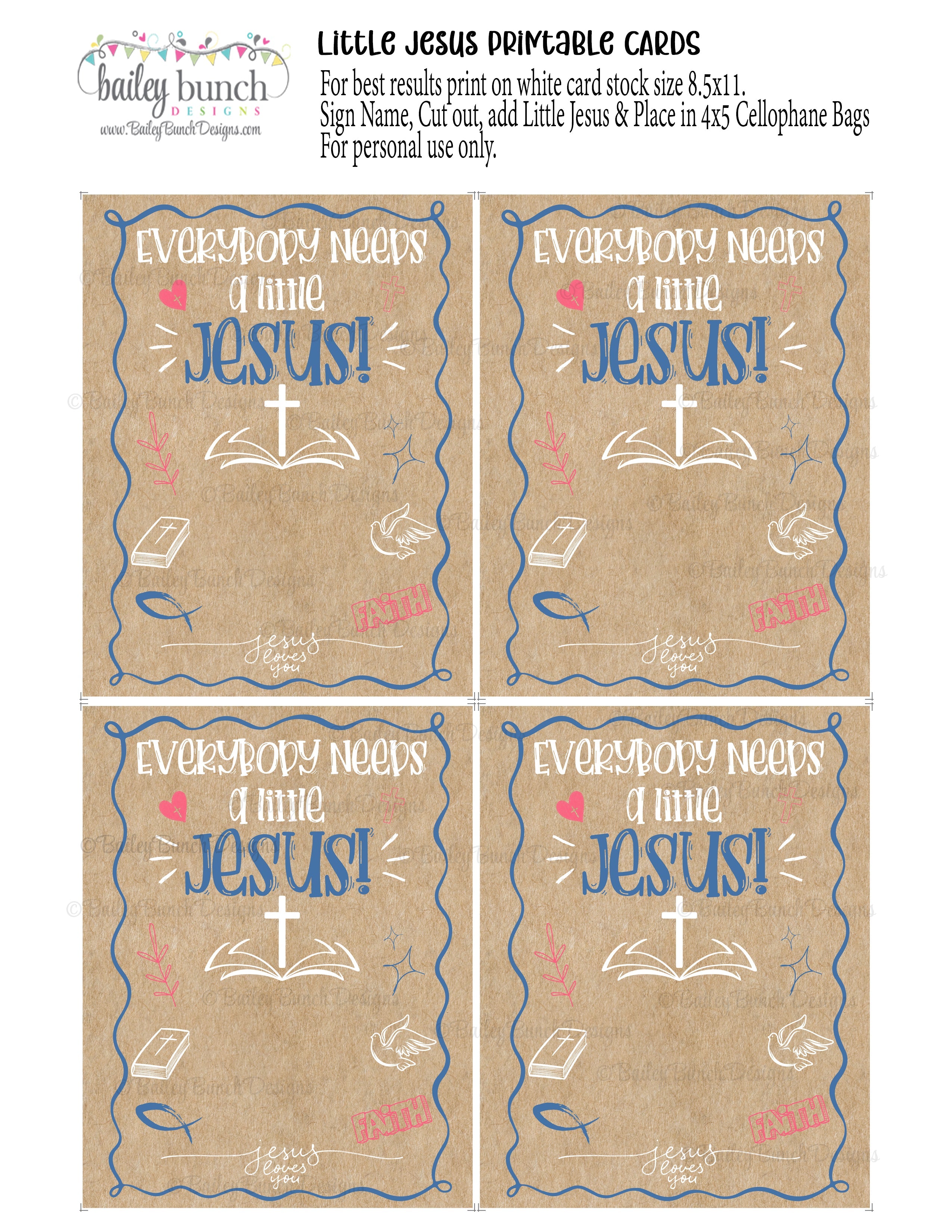 These cards are a creative and faith-centered way to share God’s love this Valentine’s Day. Download now to make your gifts truly special and Christ-focused! Share a little Jesus wherever you go! Everyone needs a little Jesus!
