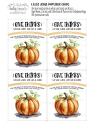 These hand illustrated "Give Thanks to the Lord" pumpkin cards are a meaningful way to give Thanksgiving blessings to your school teachers, church volunteers, and dinner guests. They make lovely place cards for table settings and a sweet note card for hostess gifts.