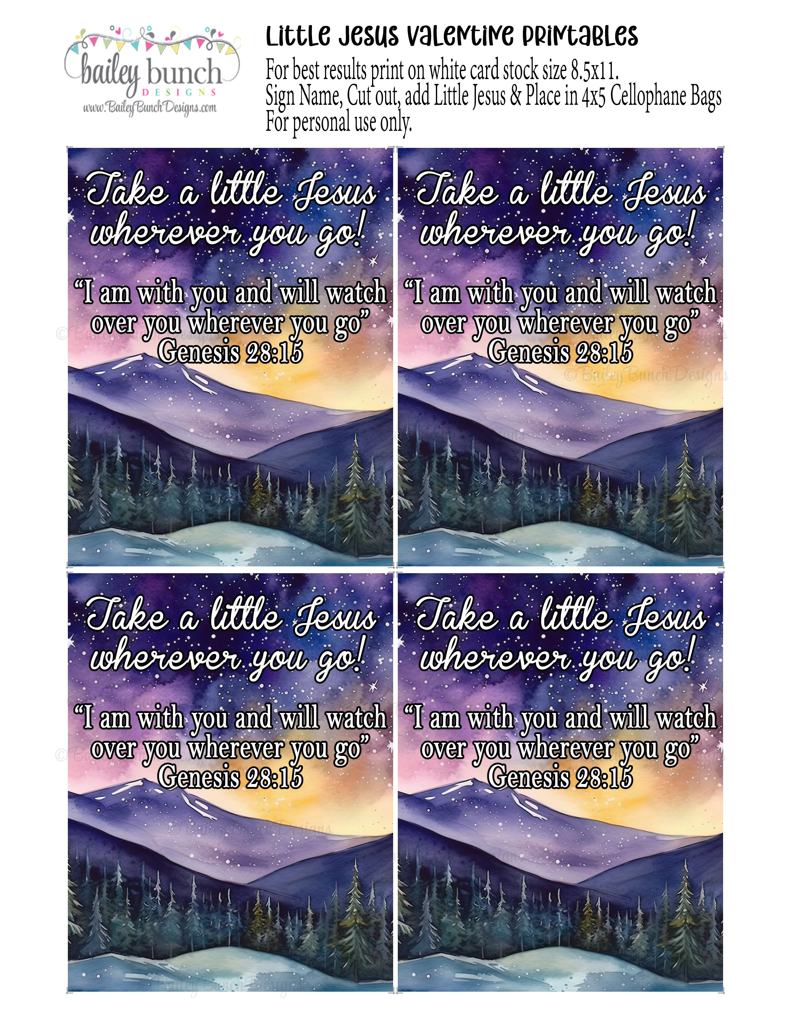 These cards are a creative and faith-centered way to share God’s love this Valentine’s Day. Download now to make your gifts truly special and Christ-focused! Share a little Jesus wherever you go! Everyone needs a little Jesus!