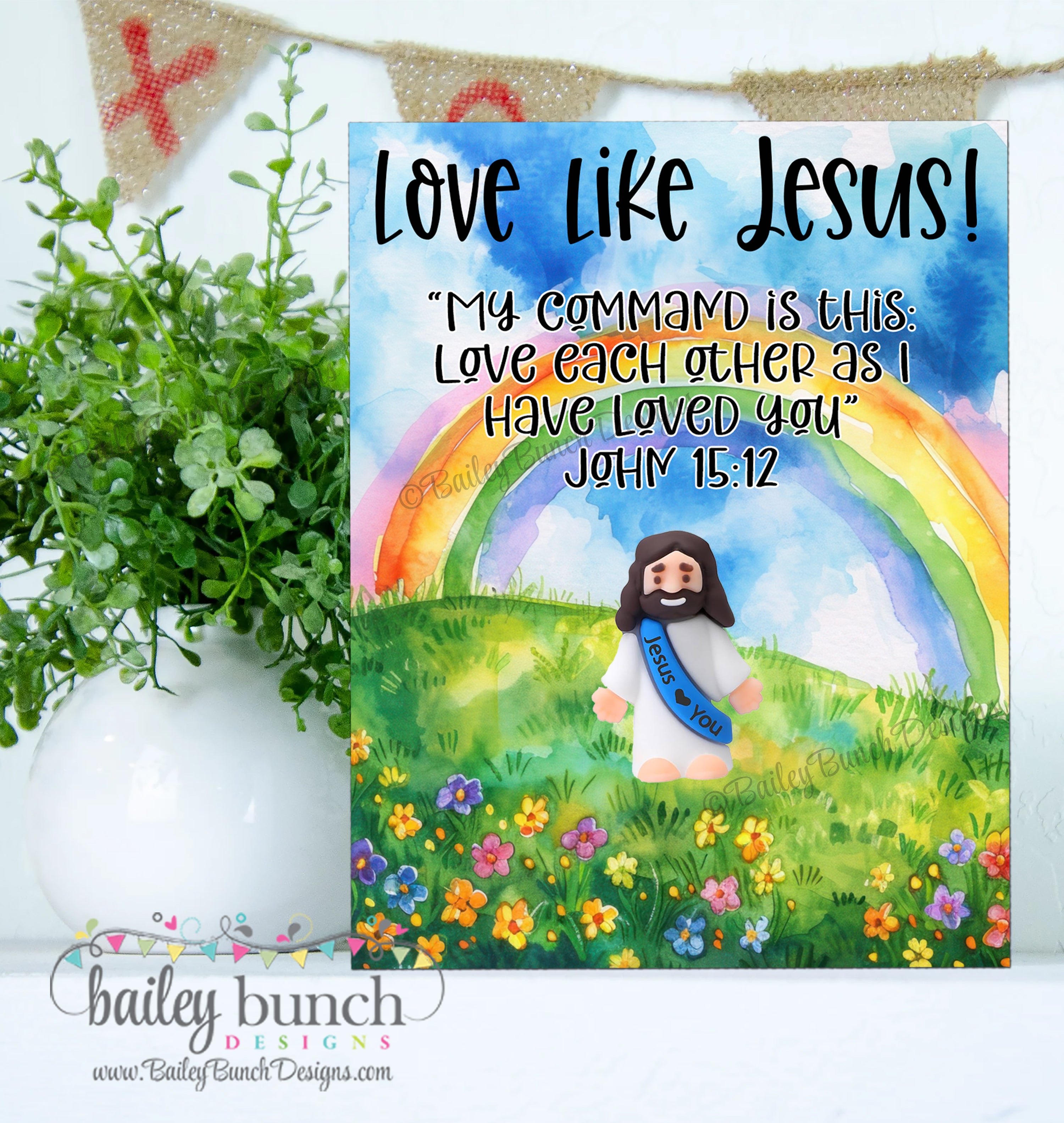 Share the LOVE of Jesus with these faith-filled printable cards! These cards are perfect for pairing with small Jesus figurines to create meaningful and memorable gifts while sharing the Gospel. Ideal for classroom handouts, church parties, Sunday School, or faith-based celebrations.
