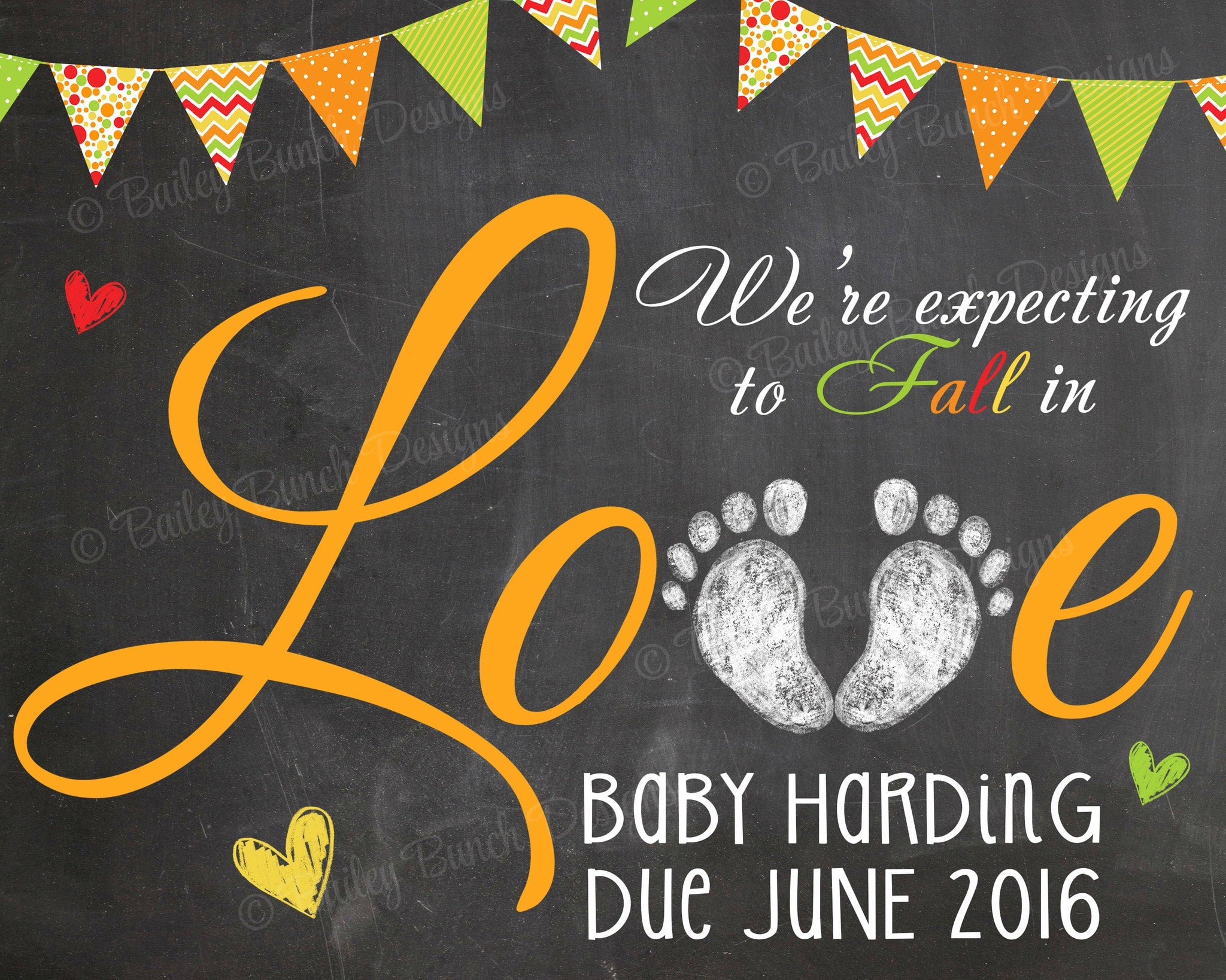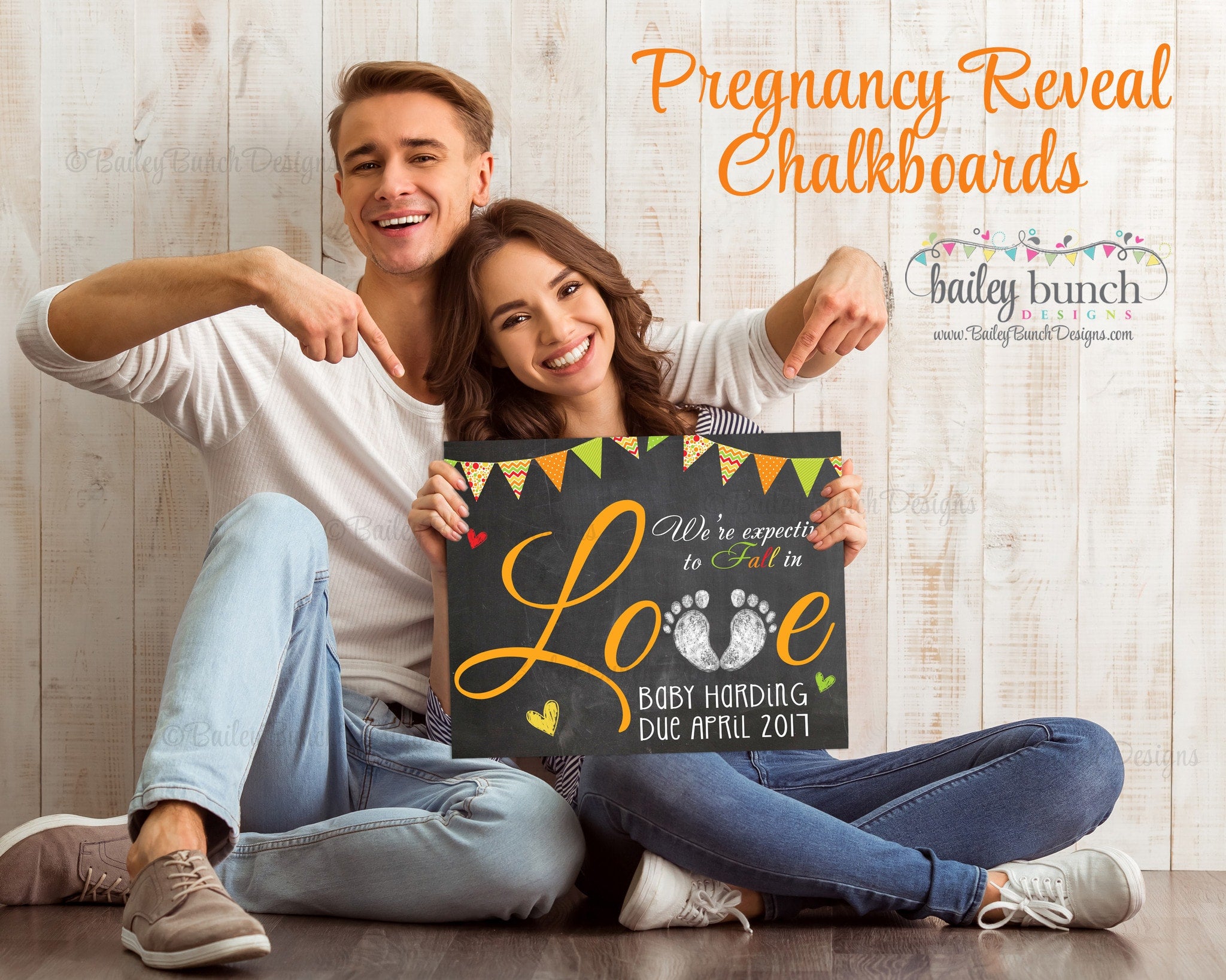 Fall in Love Pregnancy Reveal Chalkboard Pregnancy Announcement, Reveal, Baby, Pink, Blue