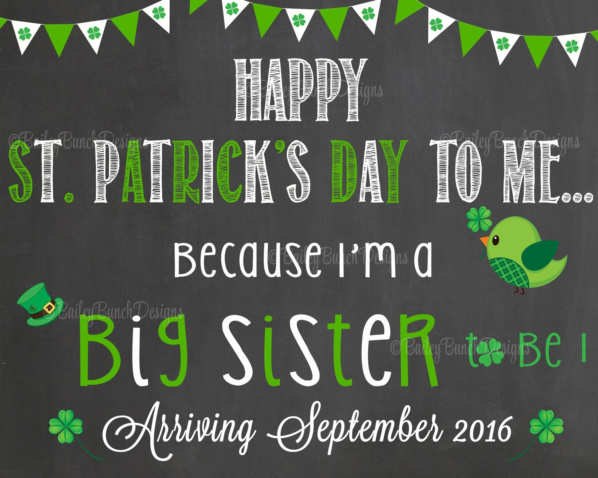 Pregnancy Reveal Announcement Big Sister Big Brother, Chalkboard Sign, St. Patrick's Day Pregnancy STCHALK0520