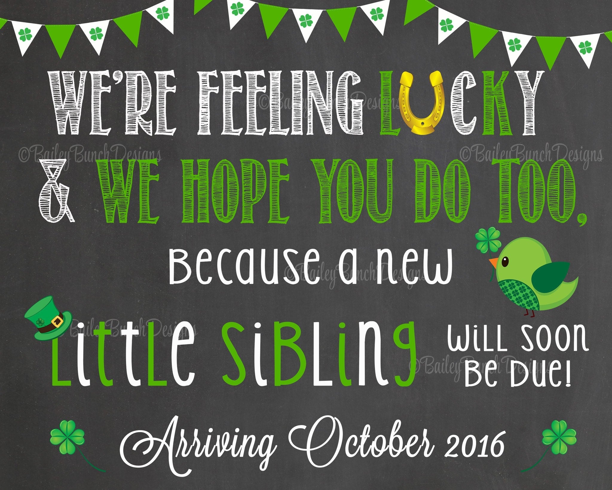 Pregnancy Reveal Announcement Big Sister Big Brother, Chalkboard Sign, St. Patrick's Day Pregnancy