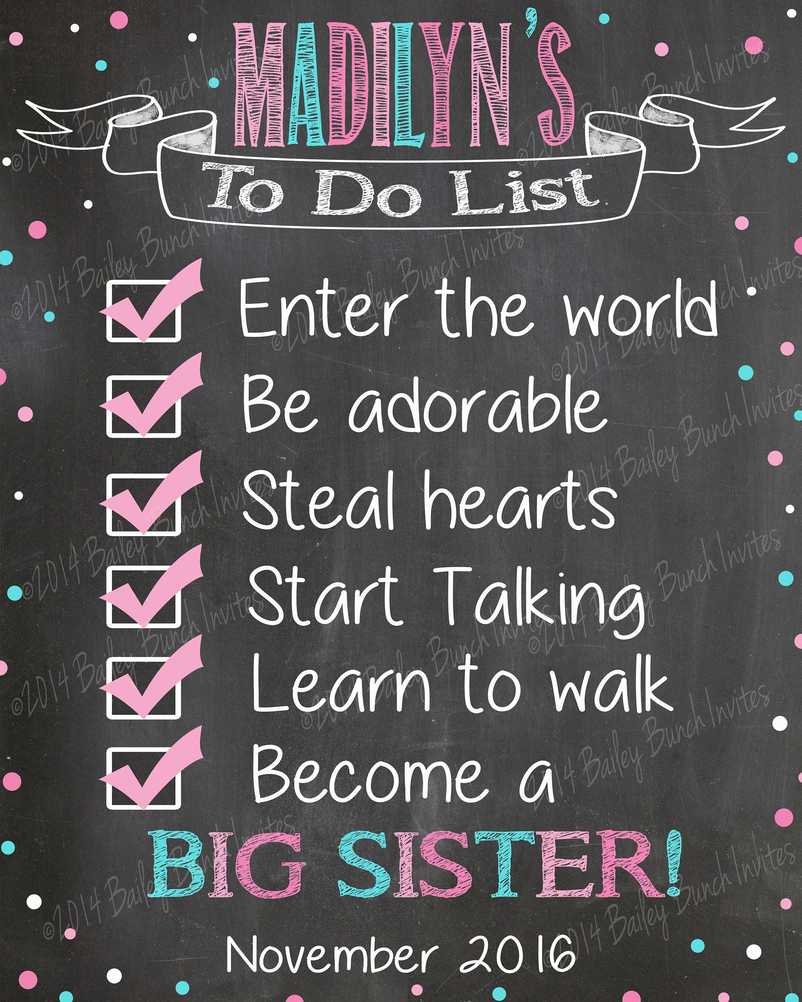 Pregnancy Reveal Announcement Chalkboard Sign, Big Sister, Big Brother to do list TODOLIST0520