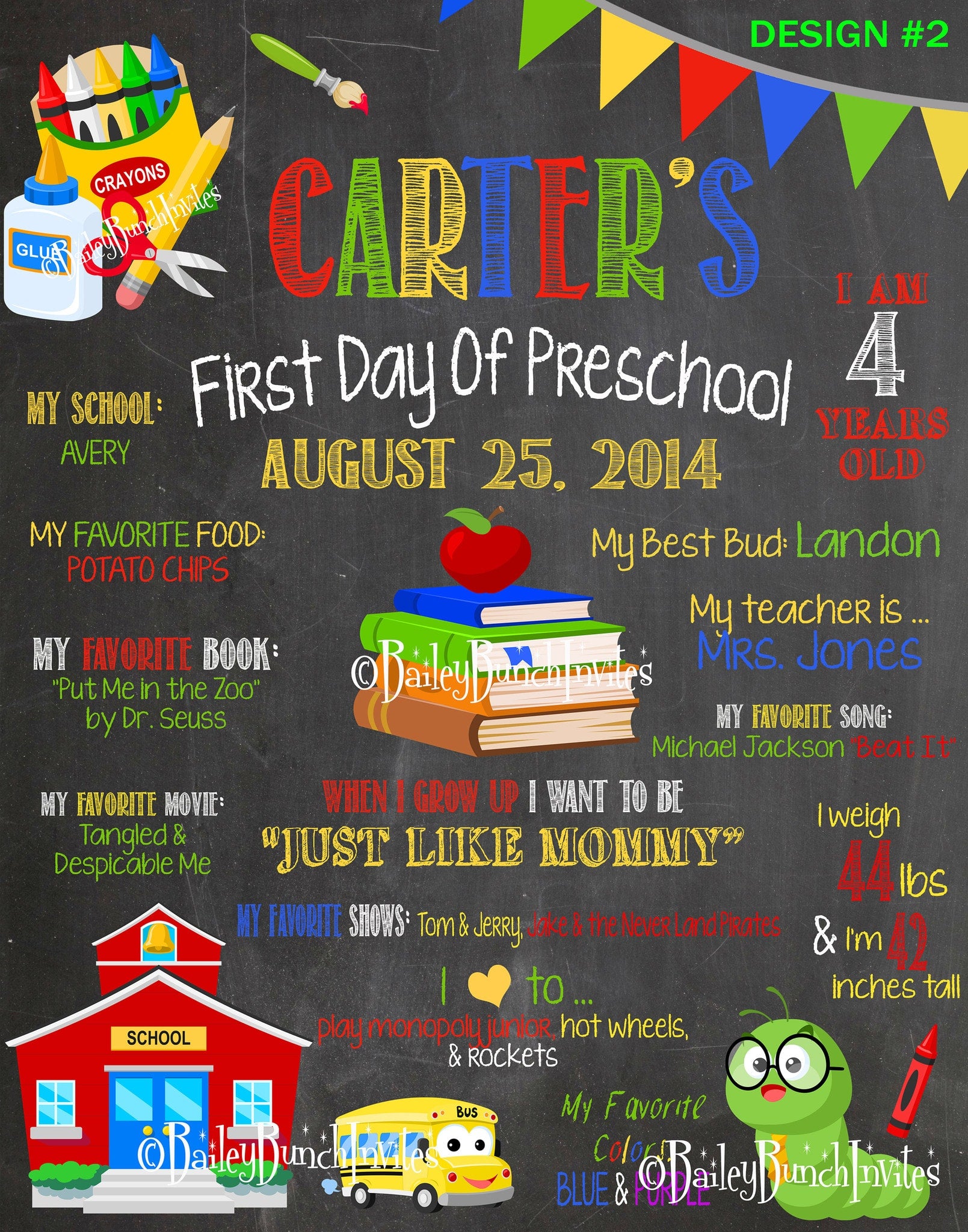 A cute sign to help celebrate your child's first day of school! (any grade) Just in time for the new school year! Start a tradition and take a photo of your child on his/her first day of school every year. Excellent for those precious keepsakes as well