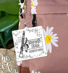 Size is approximately 3x3, Design is sublimated on white acrylic, single sided