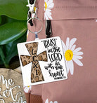 Size is approximately 3x3, Design is sublimated on white acrylic, single sided