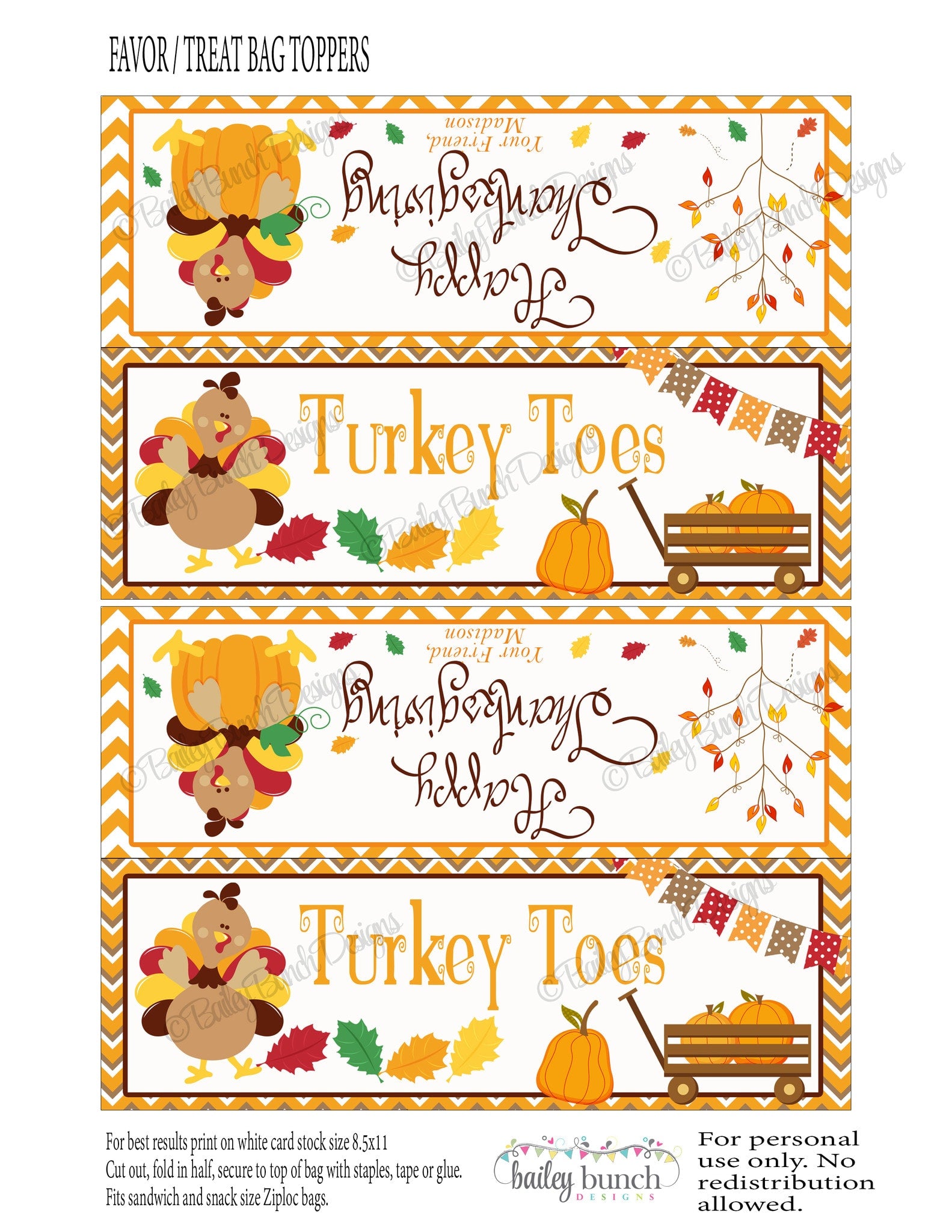 Thanksgiving Turkey Toes Treat Bags, Toppers, Happy Thanksgiving TURKEYTOEVR0520