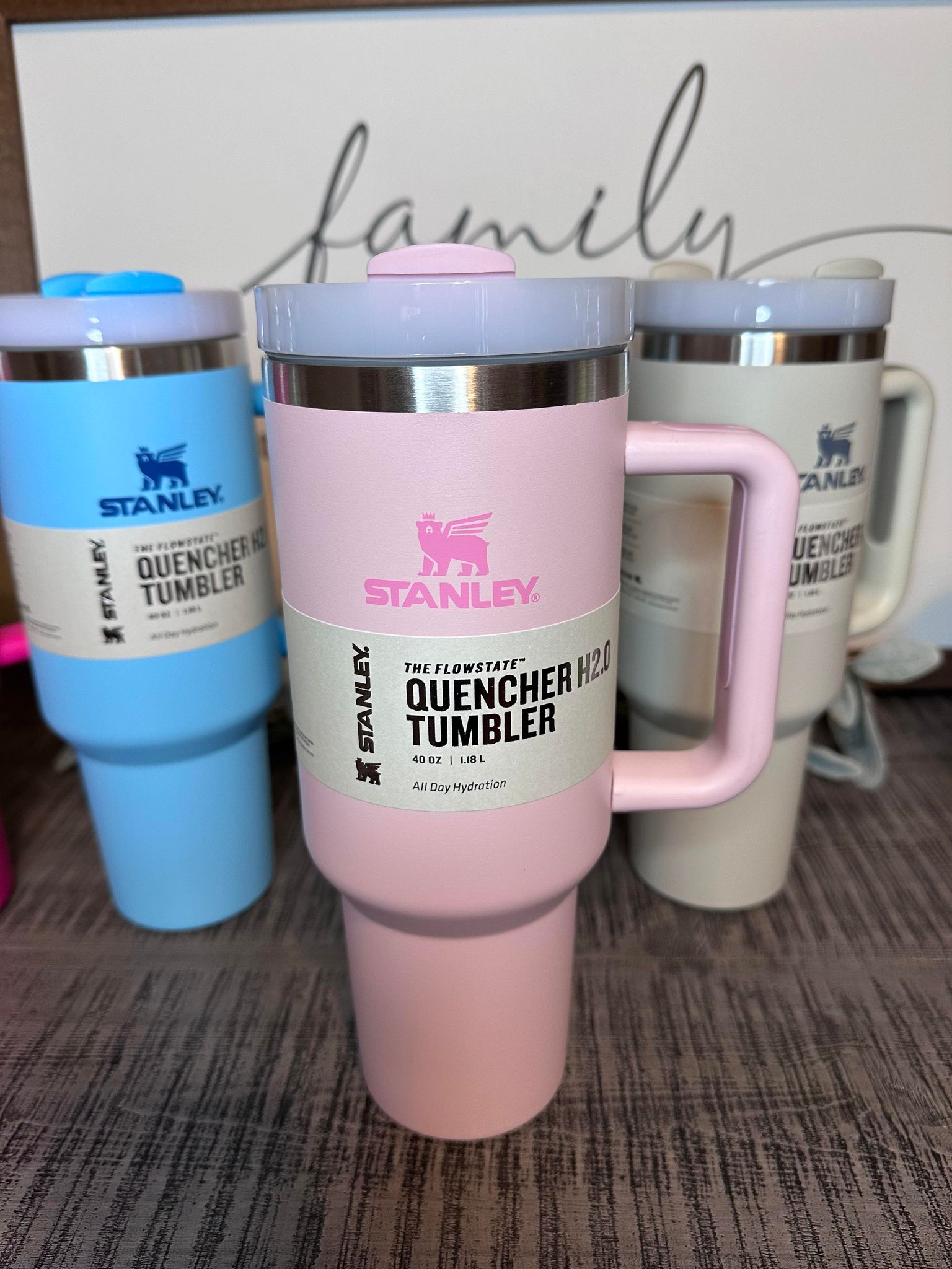 Our 40oz tumblers with handles are comfortable to hold and easy to fit into any cup holder! Includes lid and straw.