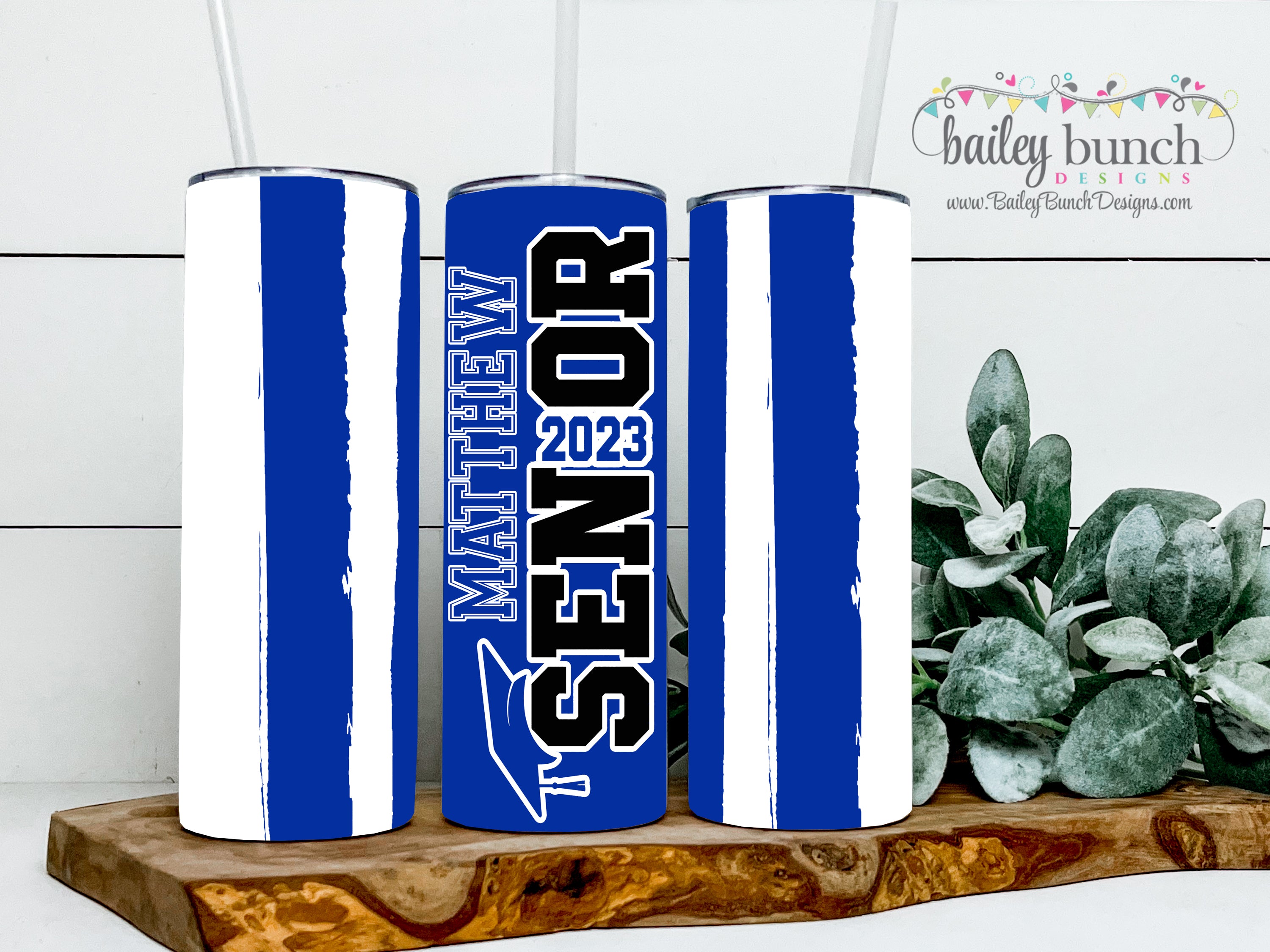 SENIOR GRADUATE STRIPES GLITTER TUMBLER!