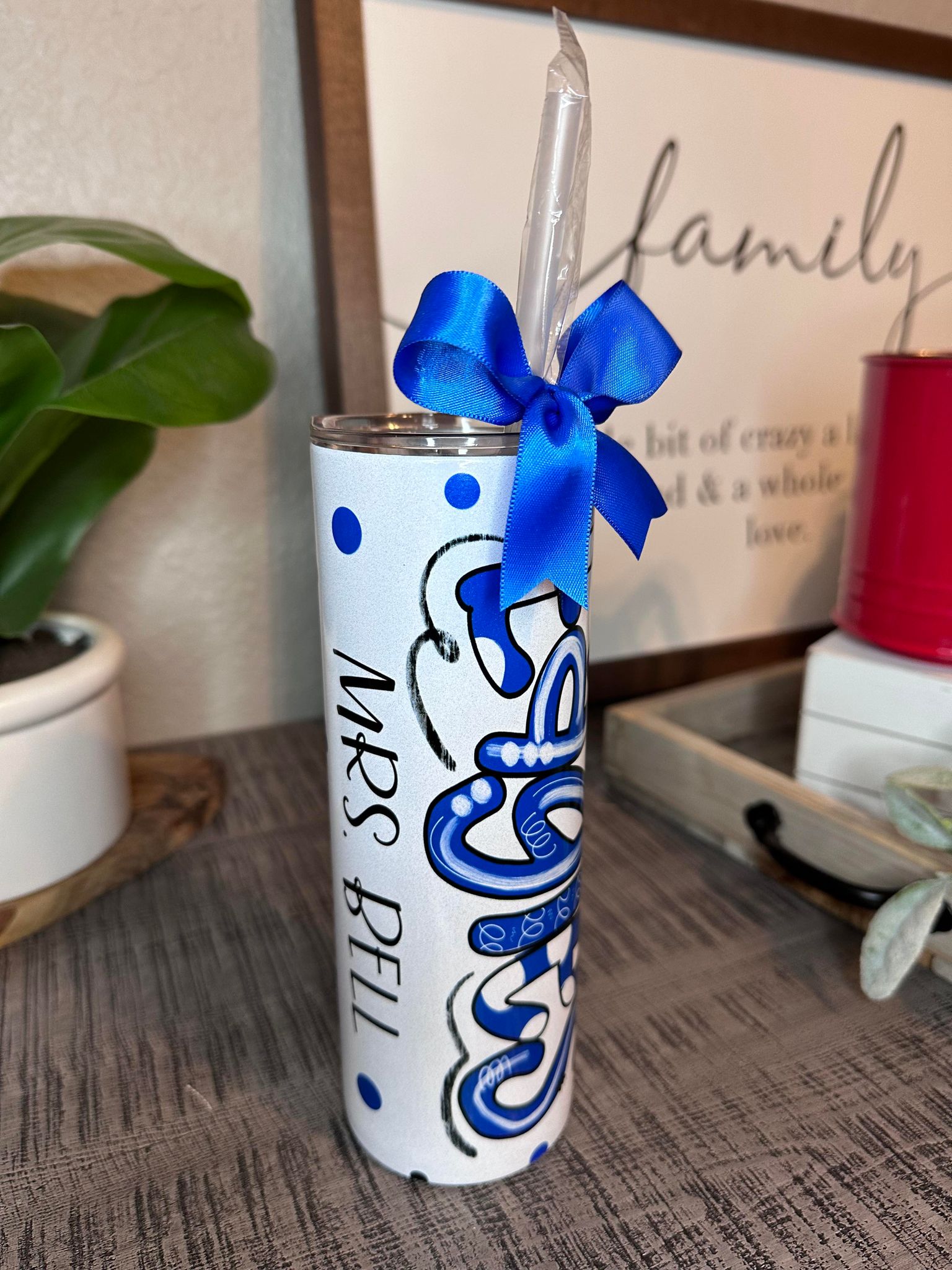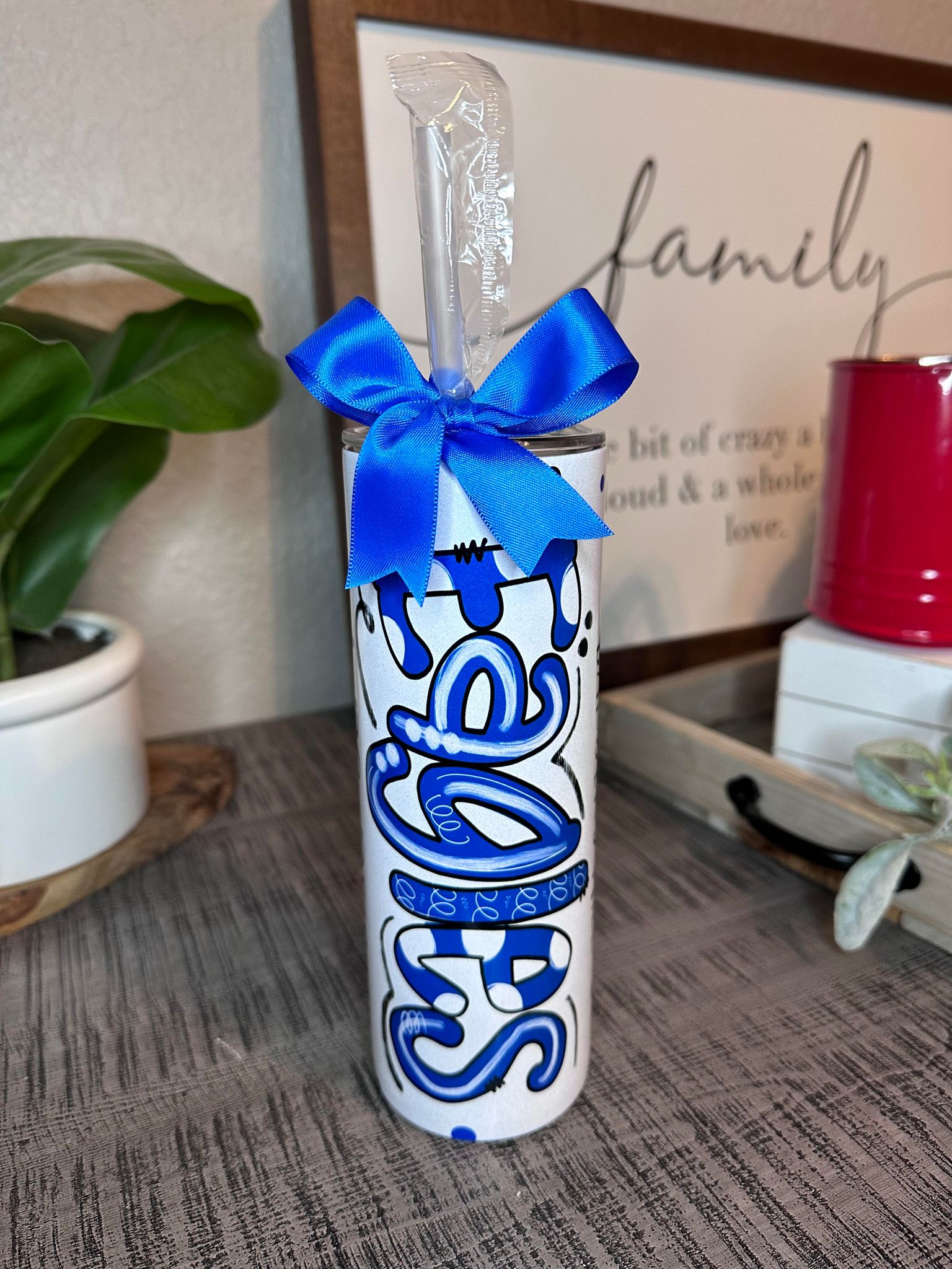 * Premium white smooth shimmery tumbler with your design printed and fused directly onto the tumbler, no cracking, peeling or fading.