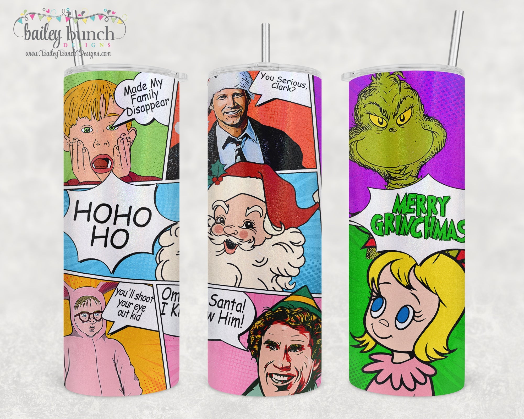 CHRISTMAS MOVIES COMIC GLITTER TUMBLER!