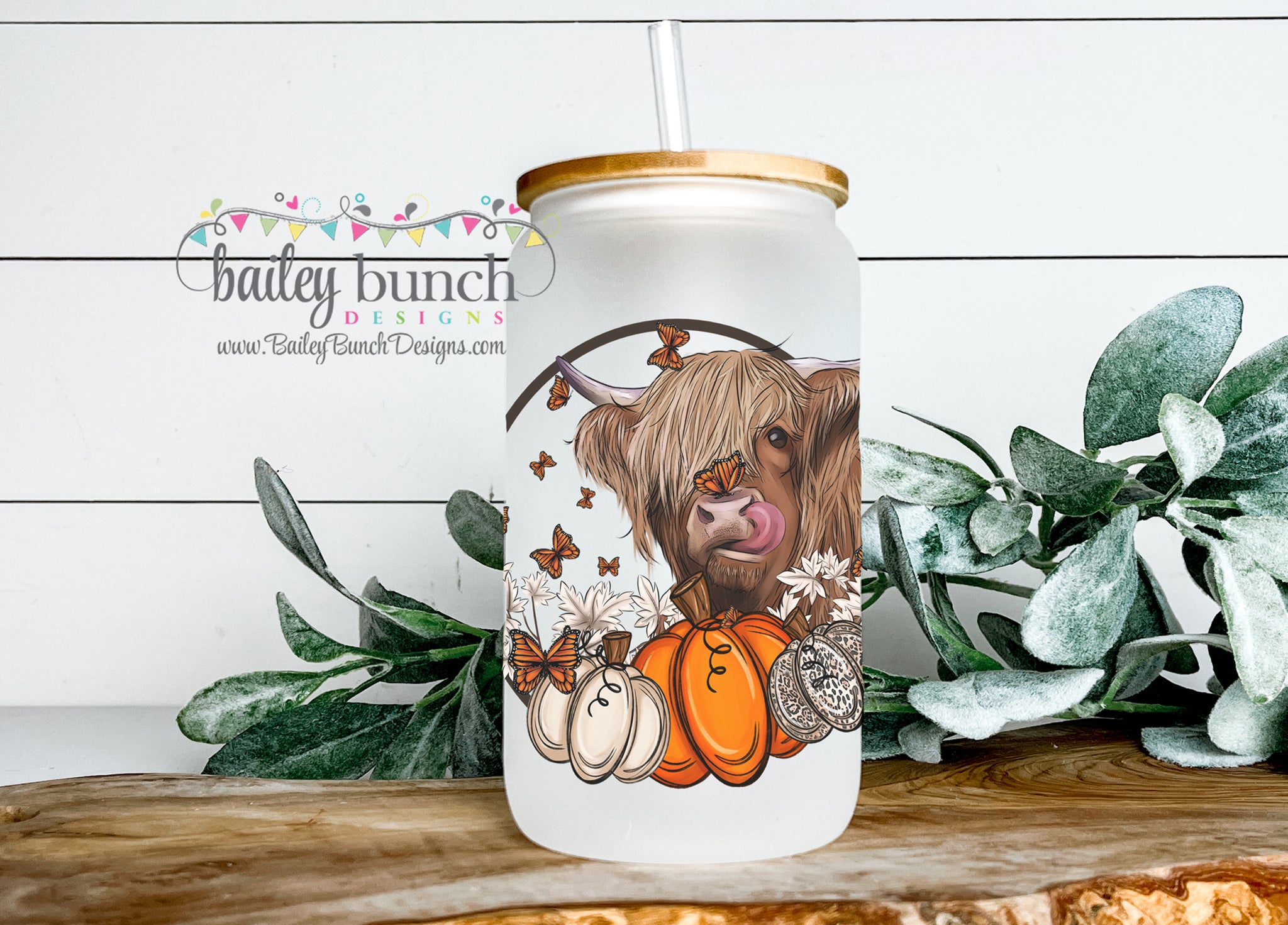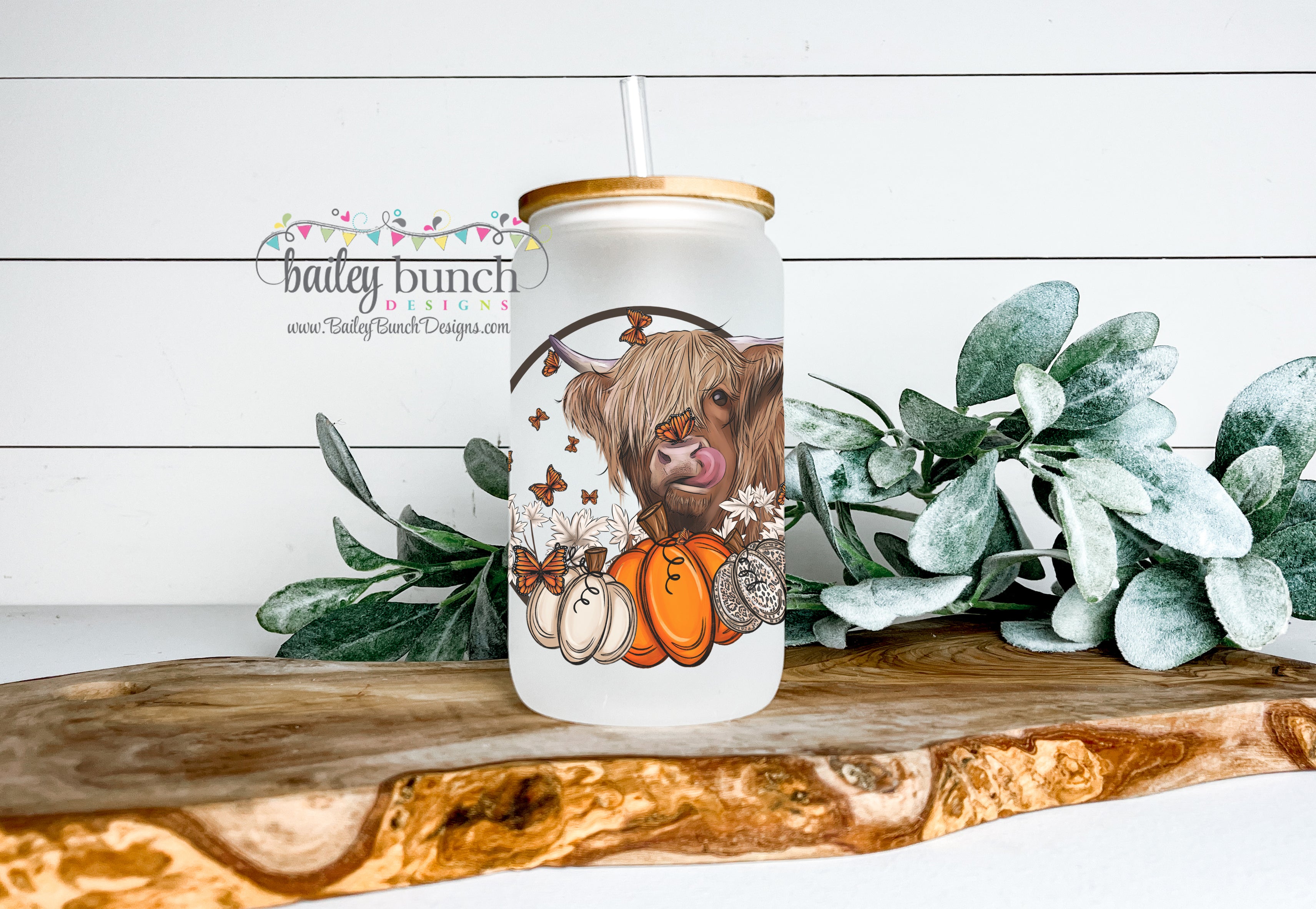 Highland Cow Pumpkin Frosted Glass Cup Libbey Can LIBBEYCOW0520