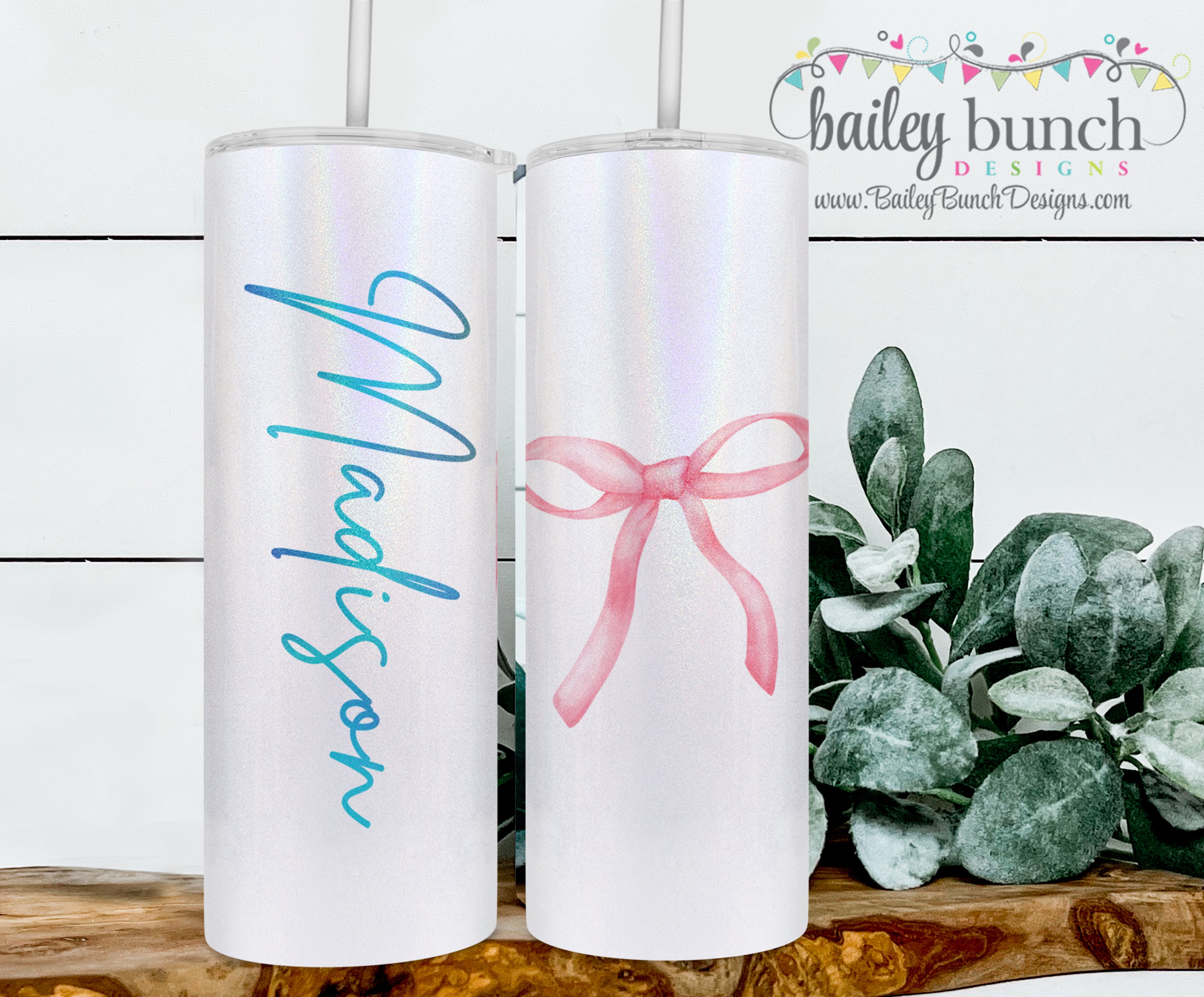 HOLLOGRAPHIC BOW NAME GLITTER TUMBLER!