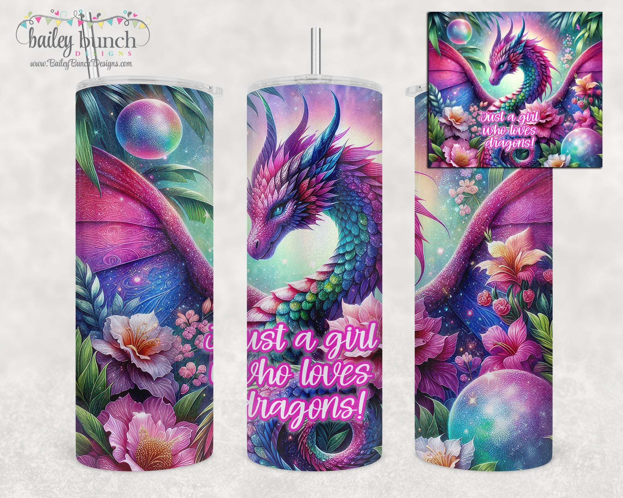 JUST A GIRL WHO LOVES DRAGONS GLITTER TUMBLER!