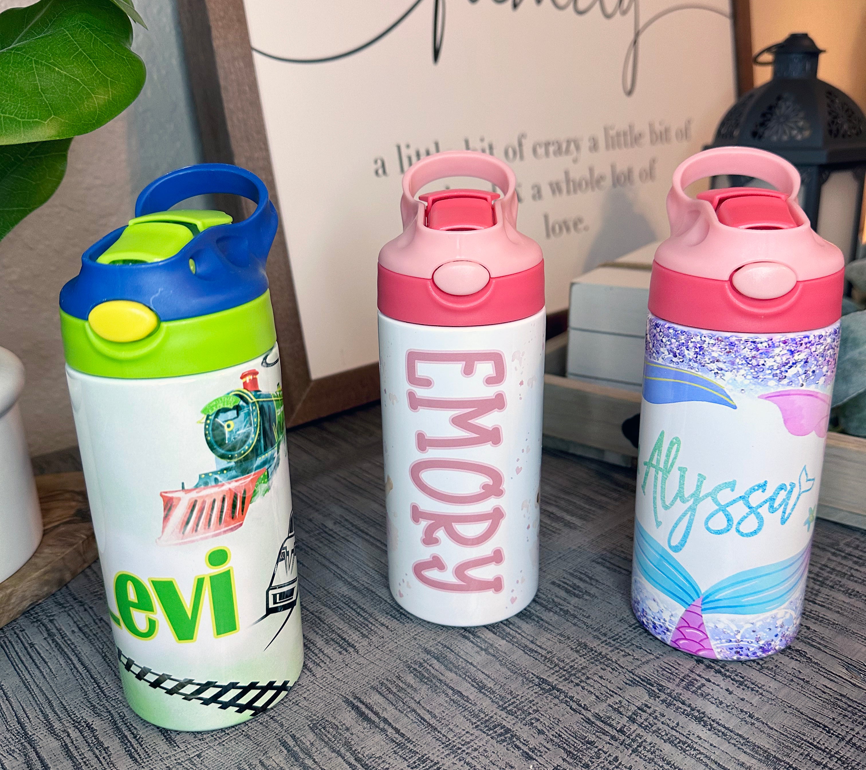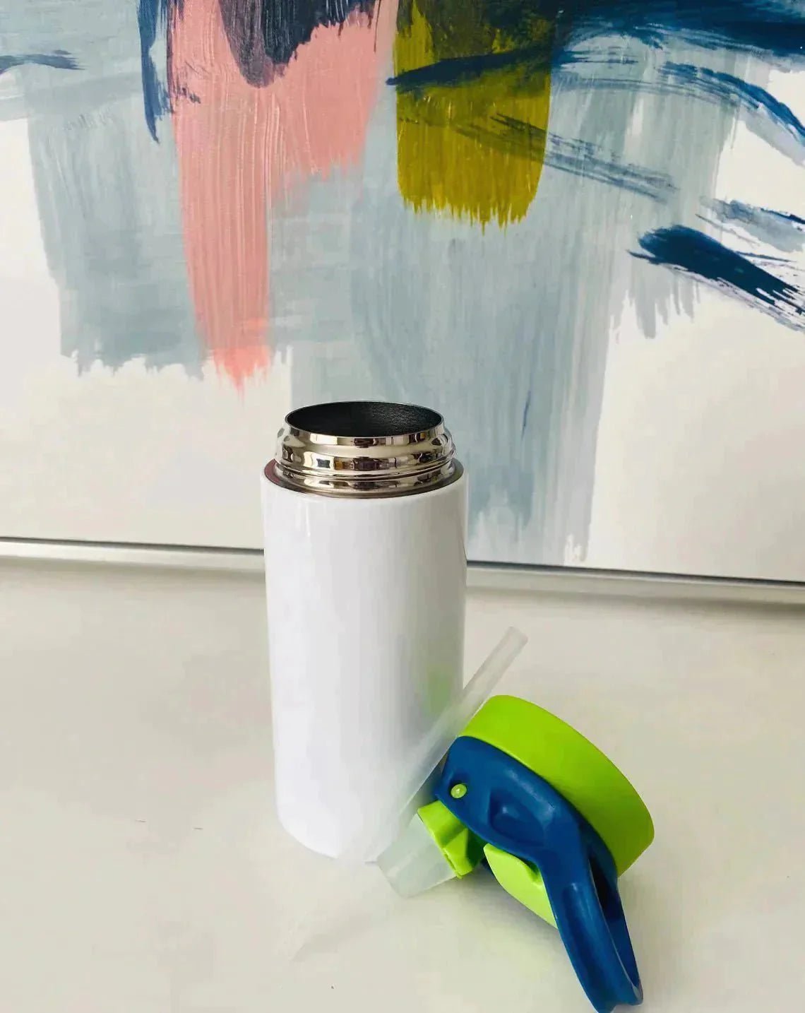Our 12oz Kids Flip Top Tumbler, features stainless steel insulated tumbler with a double-wall vacuum insulation with a Leak-Proof flip-top lid and a Reusable Plastic Straw.