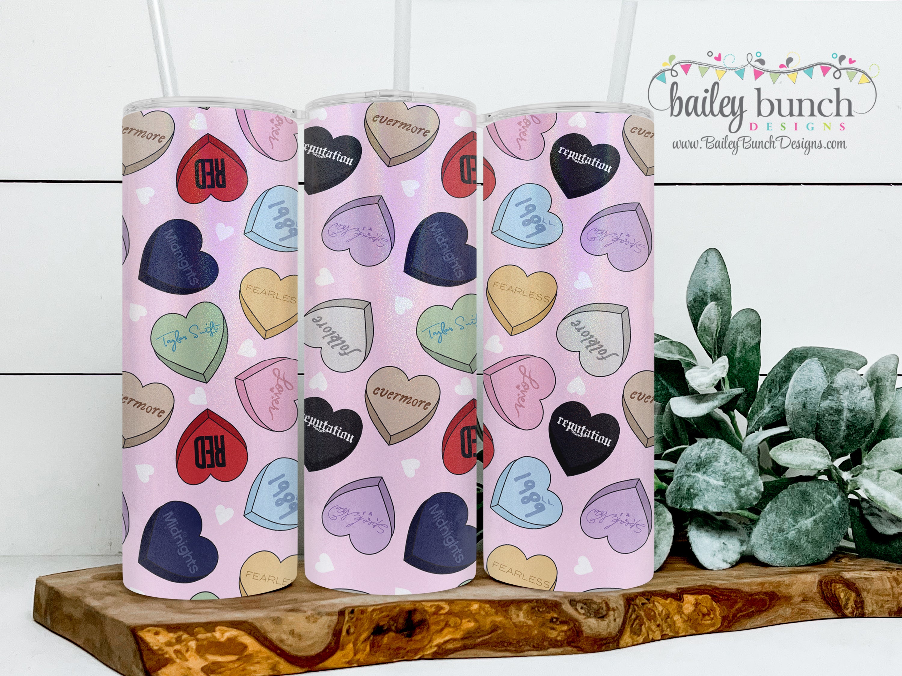 Swiftie Eras Candy Hearts Valentine's Day Shimmer Tumbler TUMVDAYTAYLOR0520