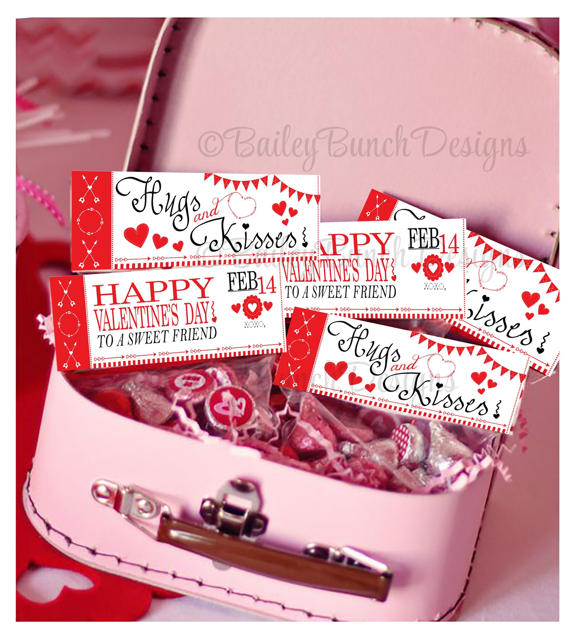 Hugs & Kisses Bag Toppers, Valentines - 2 DESIGNS!! INSTANT DOWNLOAD
