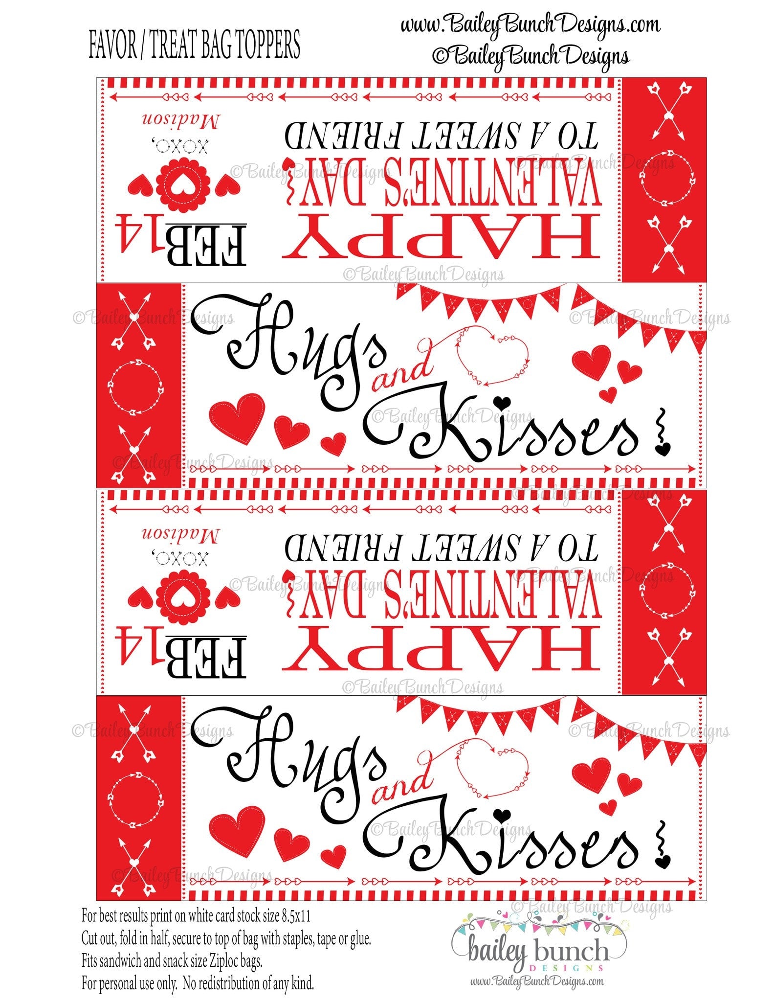 Hugs & Kisses Bag Toppers, Valentines - 2 DESIGNS!!