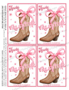 Mini Cowgirl Boot Pink Bow Howdy Valentines Printable Cards IDVDAYHOWDYPINKM0520