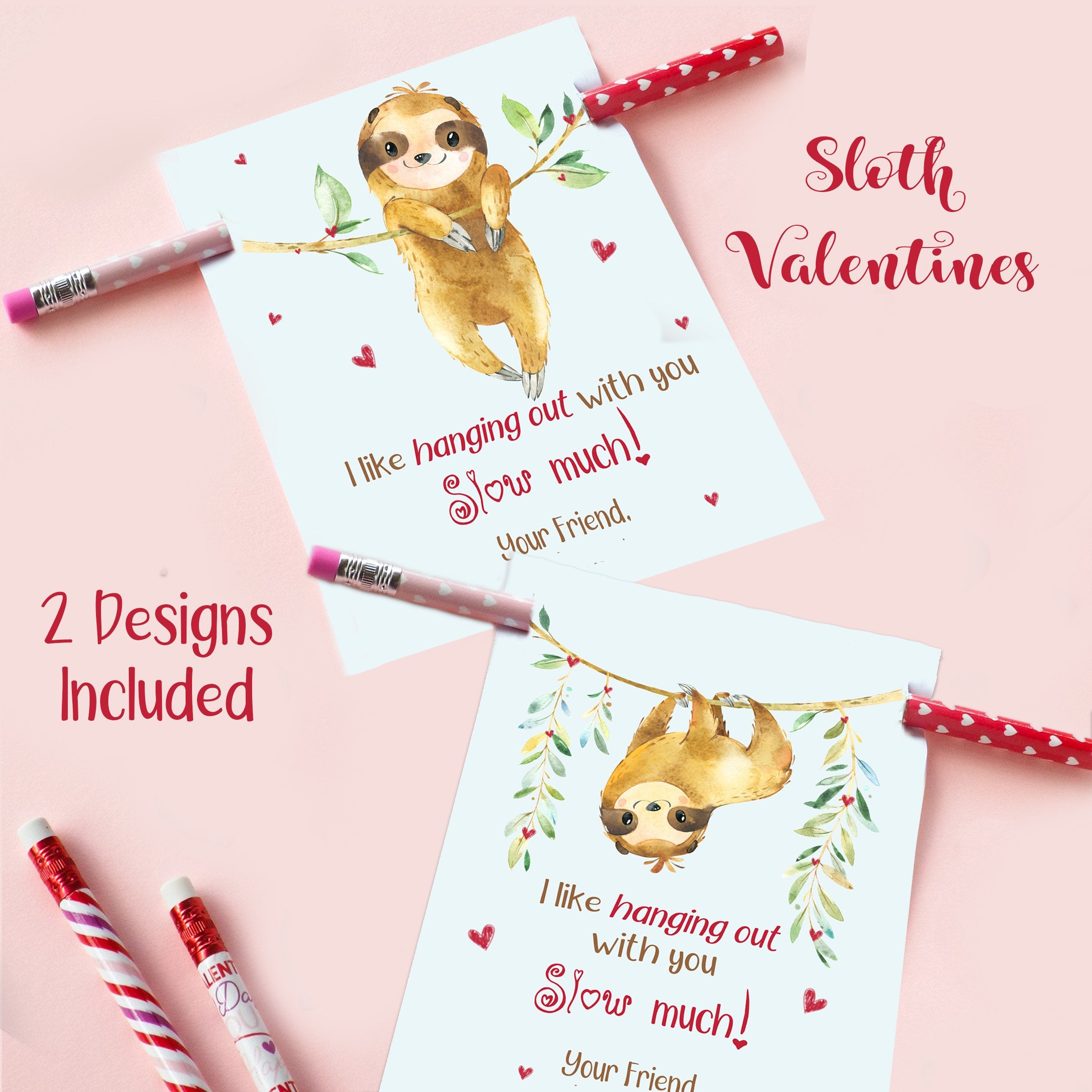 SLOTH Pencil Valentines, I like hanging out with you SLOW much IDVDAYSLOTH0520