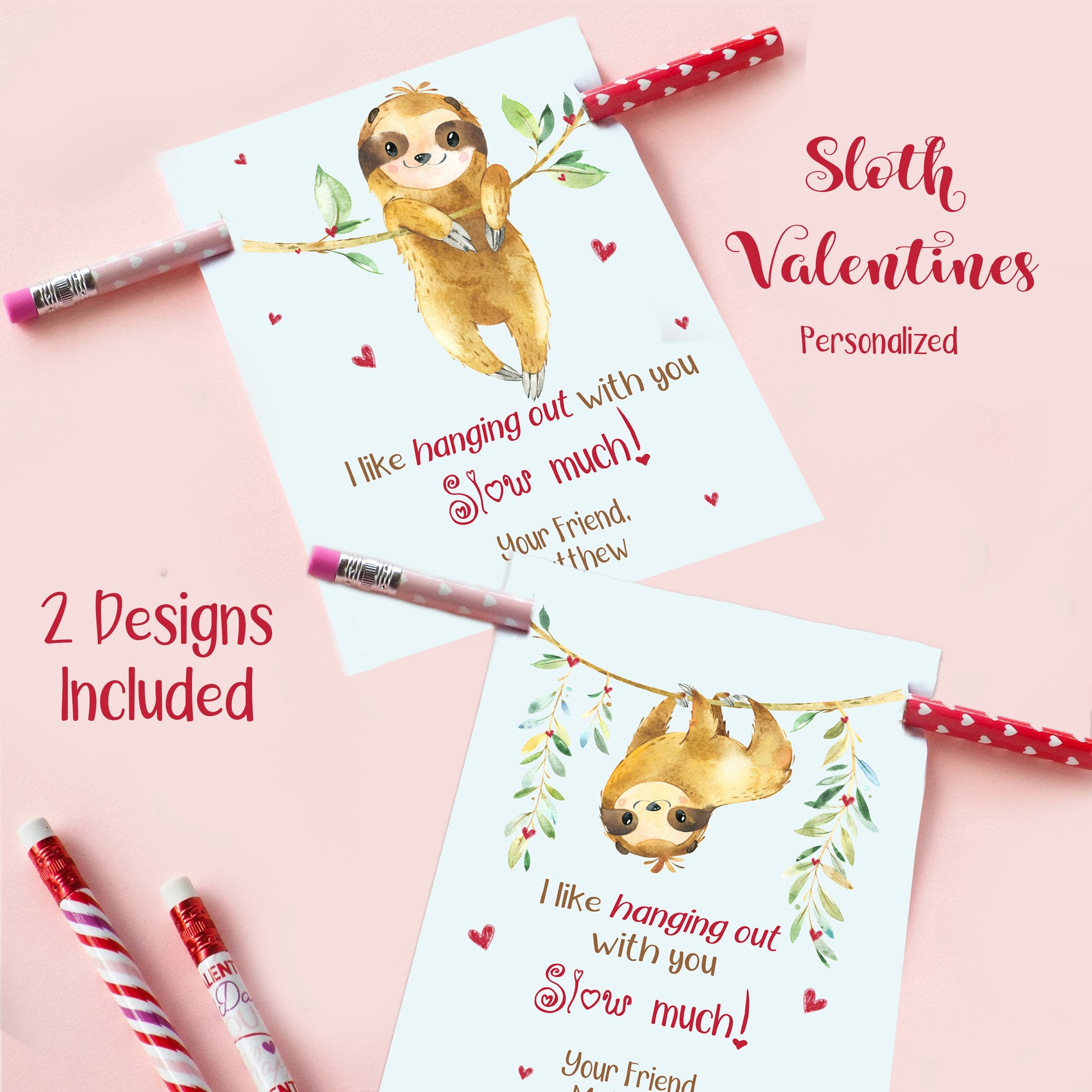 Sloth Pencil Valentines, I like hanging out with you SLOW much VDAYSLOTH0520