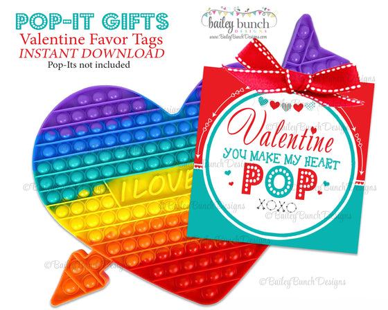 Valentine Pop It Fidget Gift Tags Pink Poppin' By to Say Happy Valentine's Day IDVDAYPOPPINBYPINK0520