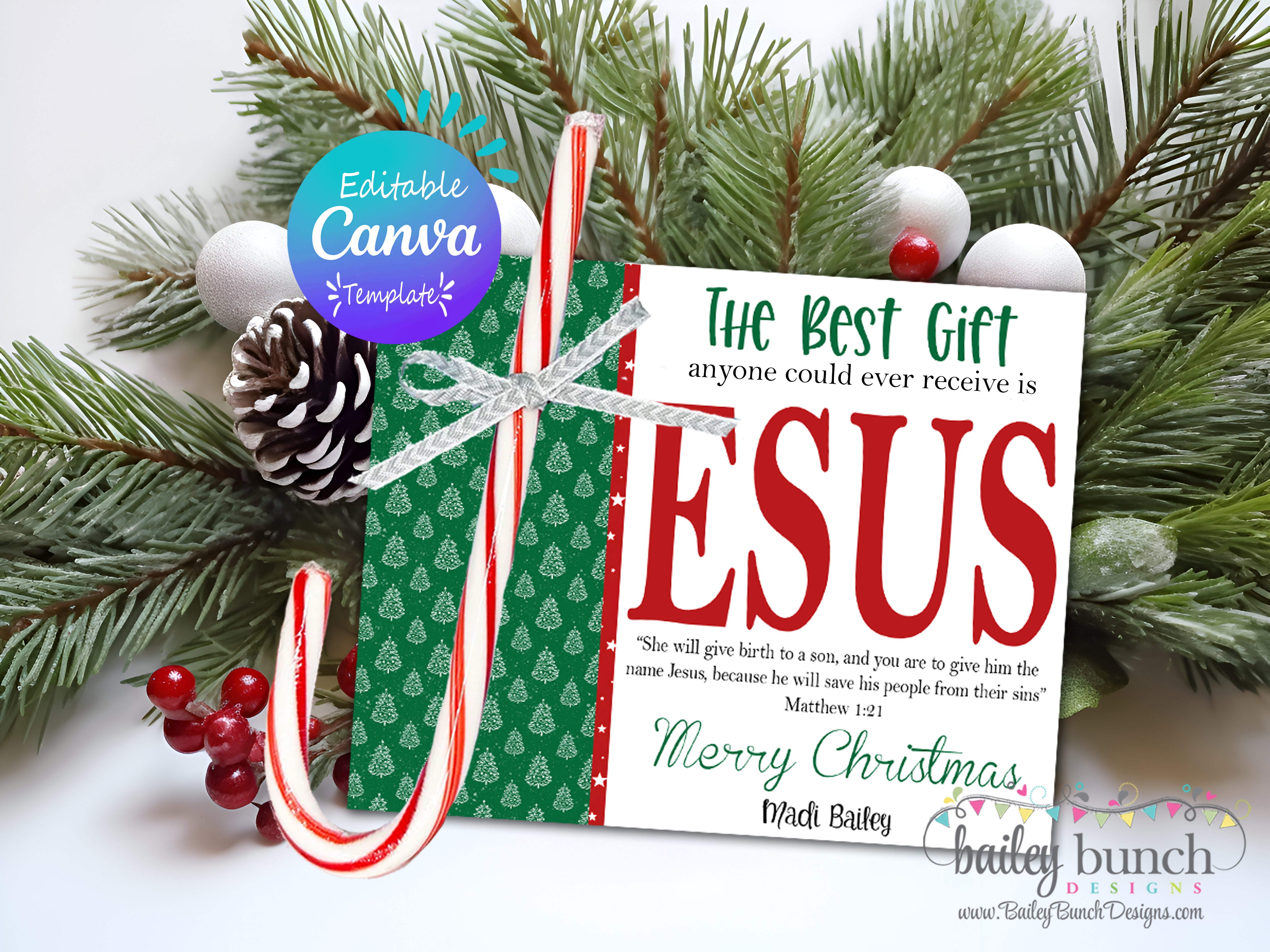 Best Gift is Jesus - Candy Cane Printable Canva Template IDJESUSC520