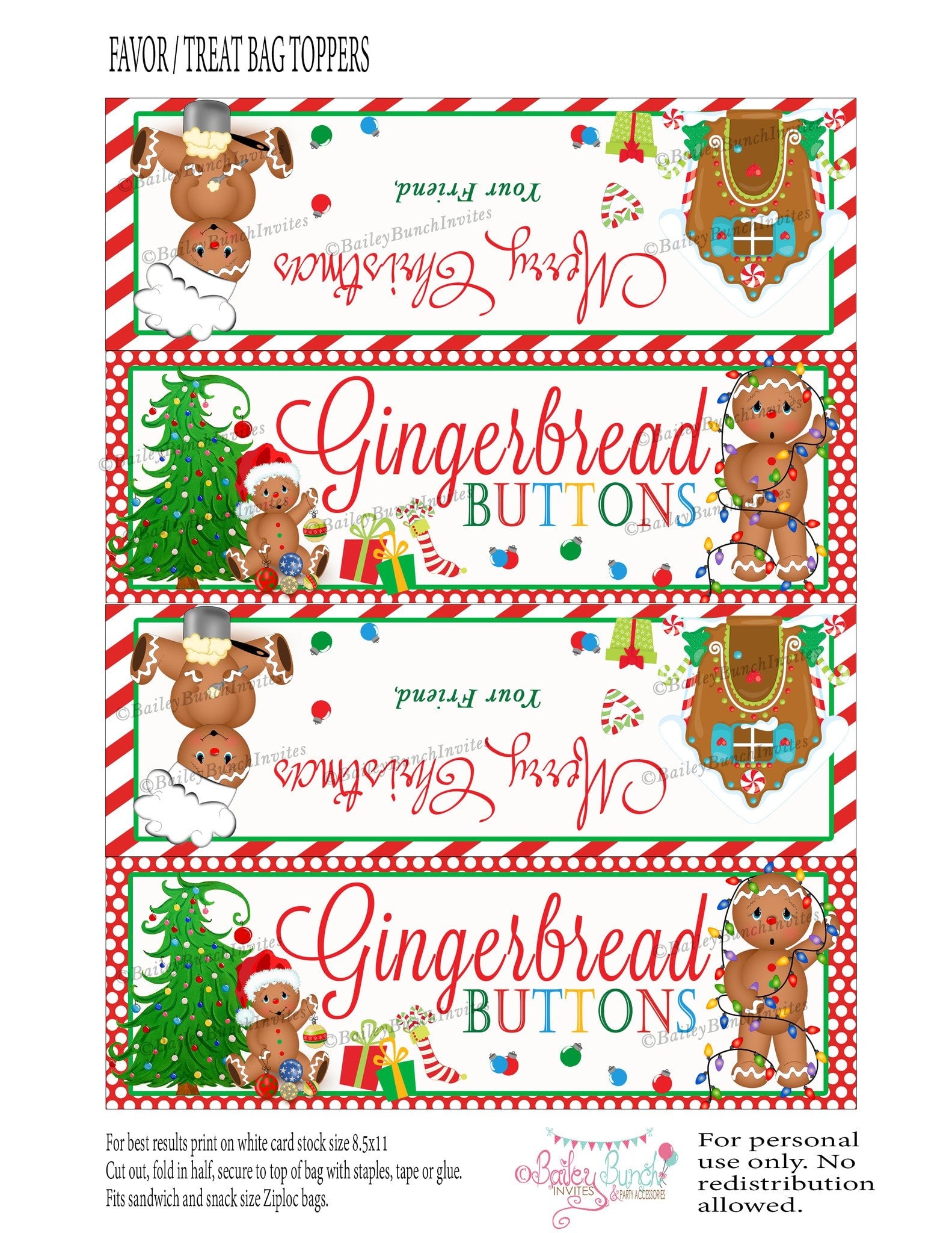 Gingerbread Buttons Treat Bags - 2 DESIGNS!! INSTANT DOWNLOAD