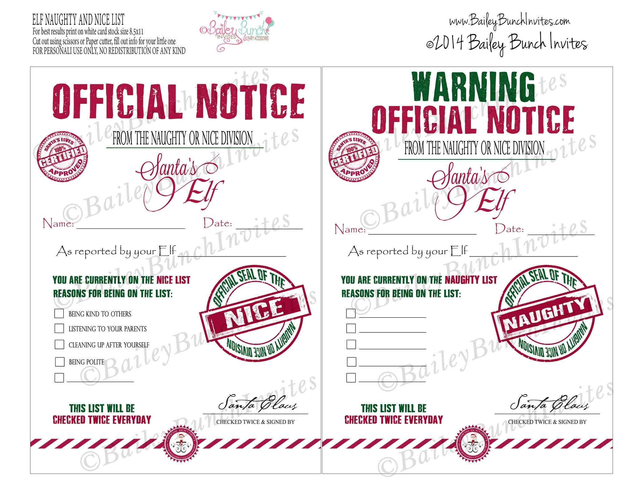 Elf Printables, Christmas Elf, nice list, naughty list, behavior report, Santa IDELF0520